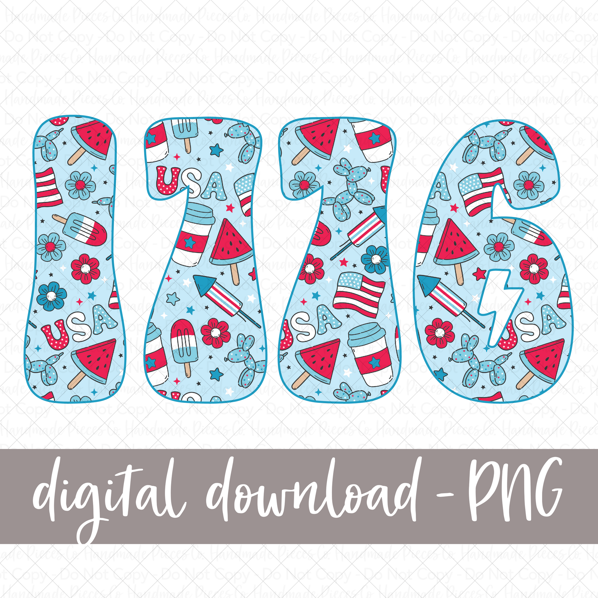 1776 Retro Blue PNG - Digital Download