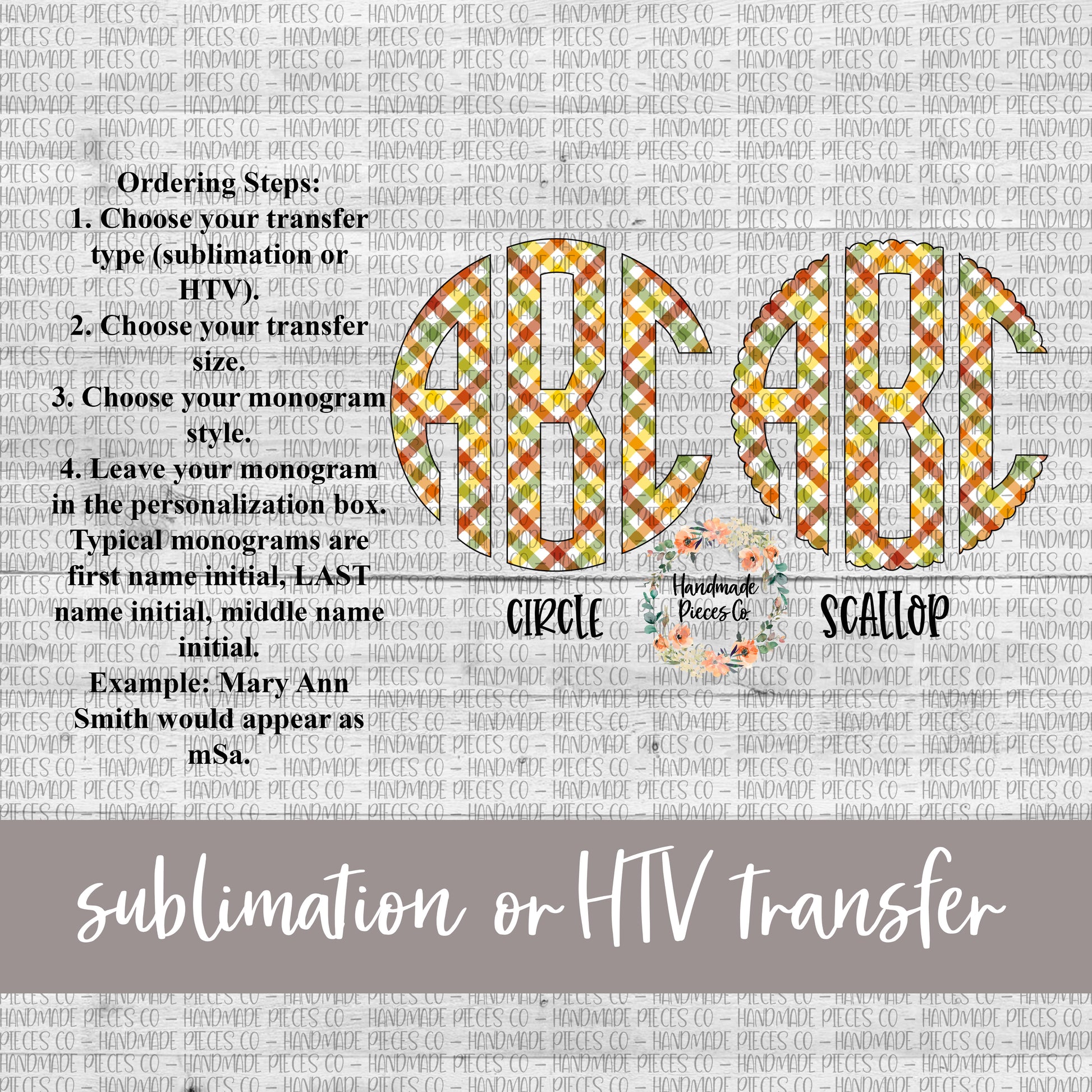 Autumn Plaid Monogram, Bright Diagonal - Sublimation or HTV Transfer