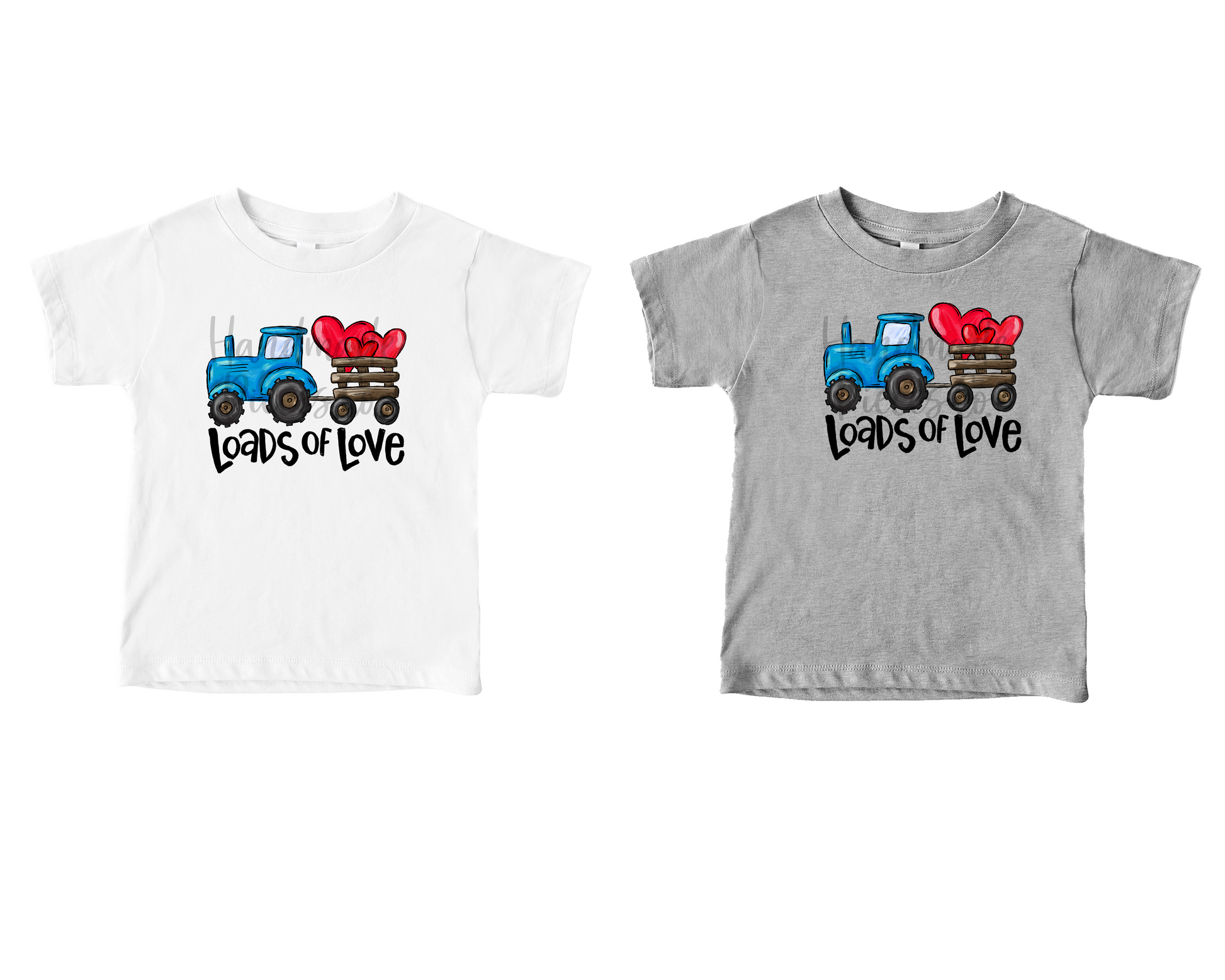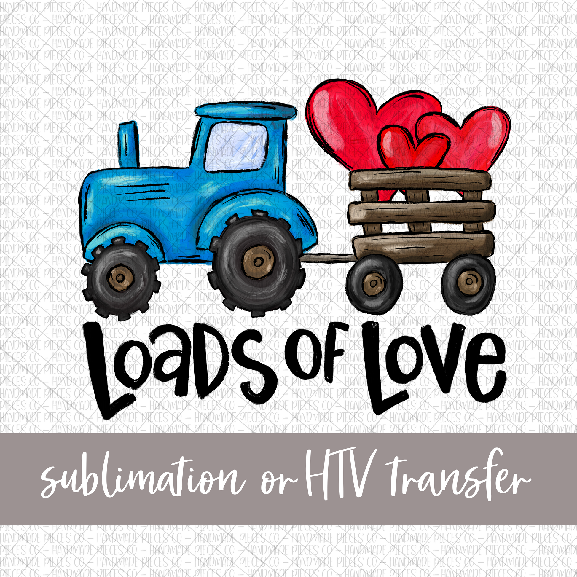 Blue Tractor with Hearts, Loads of Love - Sublimation or HTV Transfer