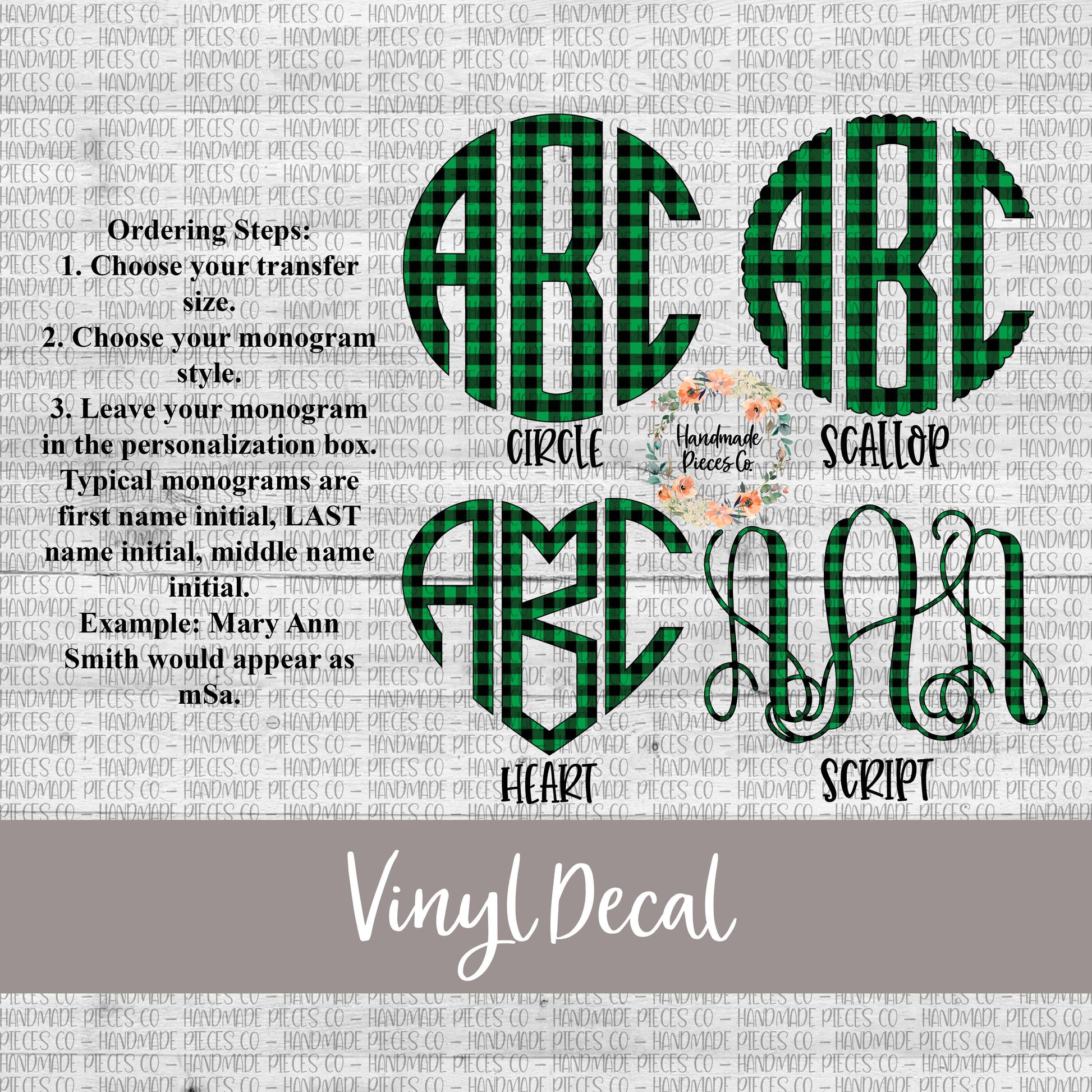 Buffalo Plaid Monogram Vinyl Decal, Black and Green Buffalo Plaid