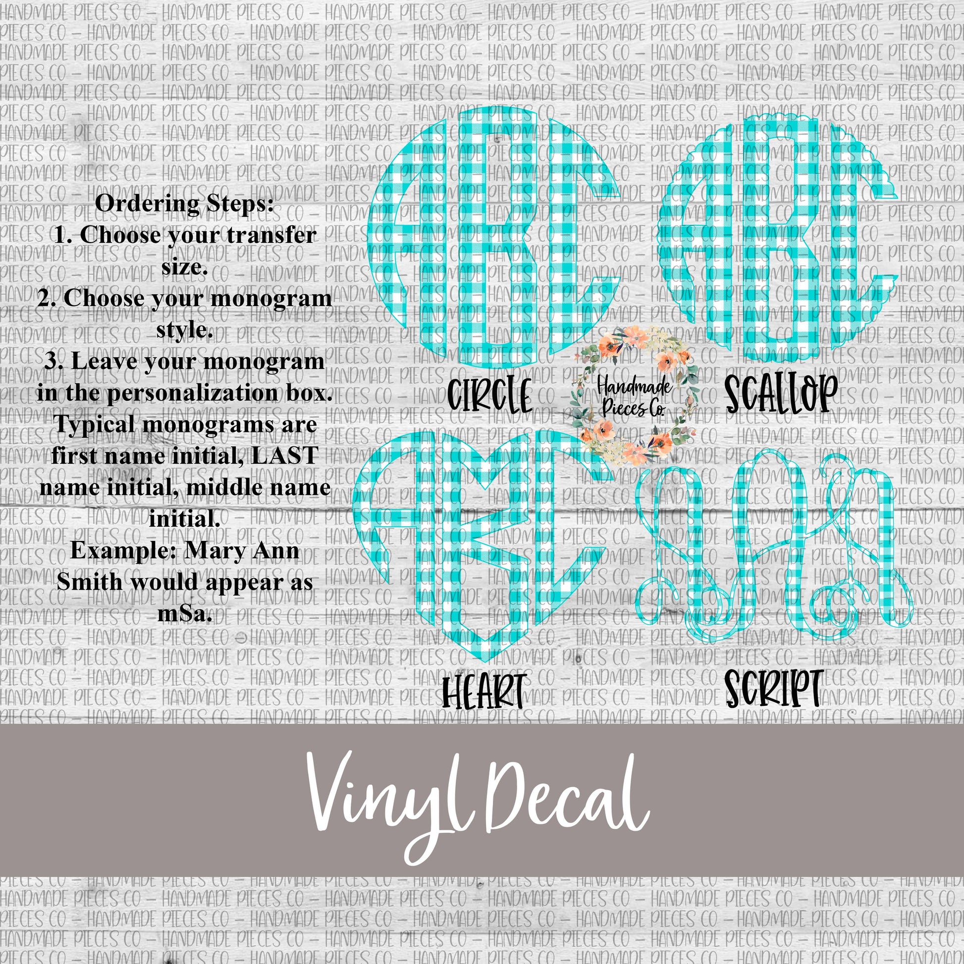 Buffalo Plaid Monogram Vinyl Decal, White and Aqua Buffalo Plaid