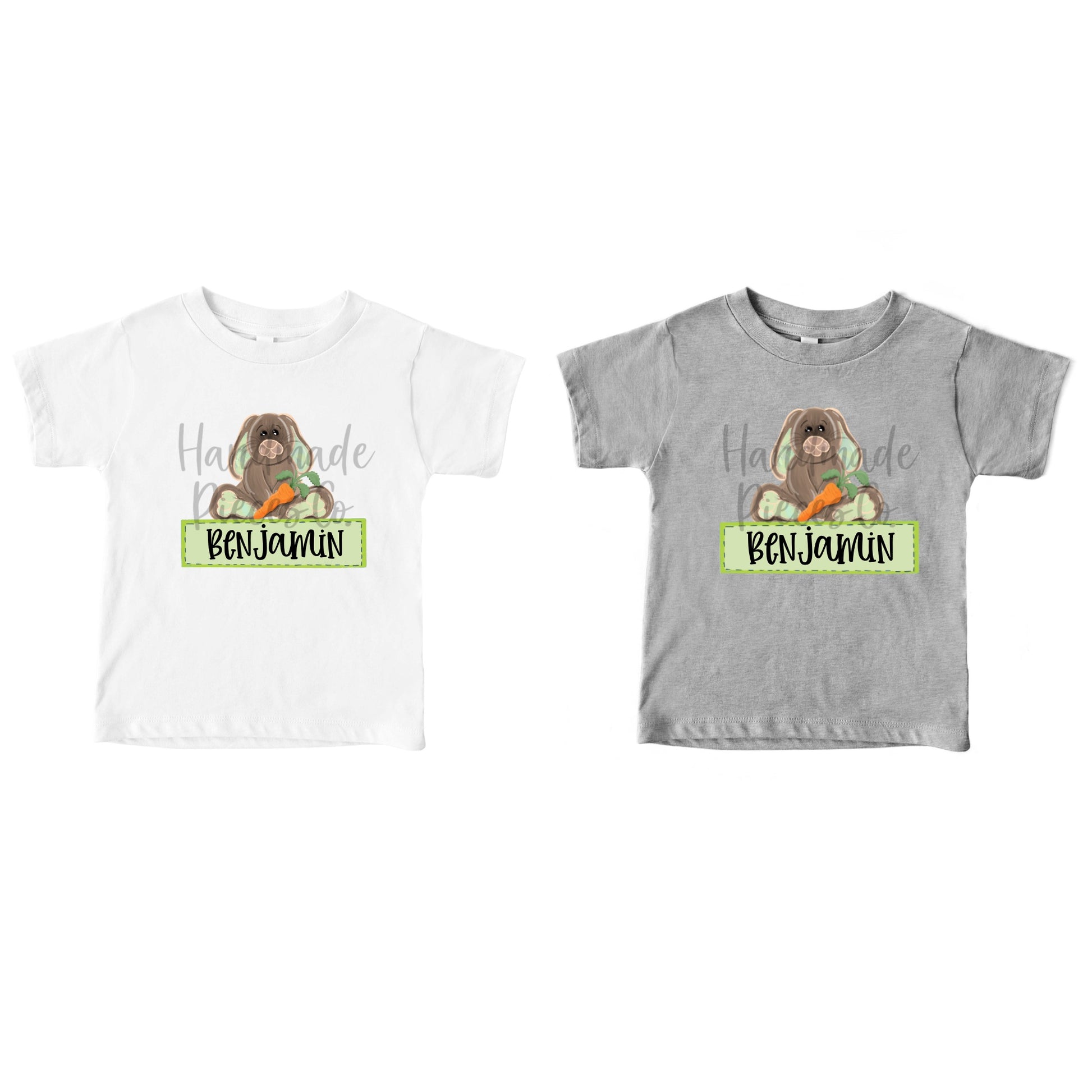 Bunny with Carrot, Watercolor Green with Name - Sublimation or HTV Transfer