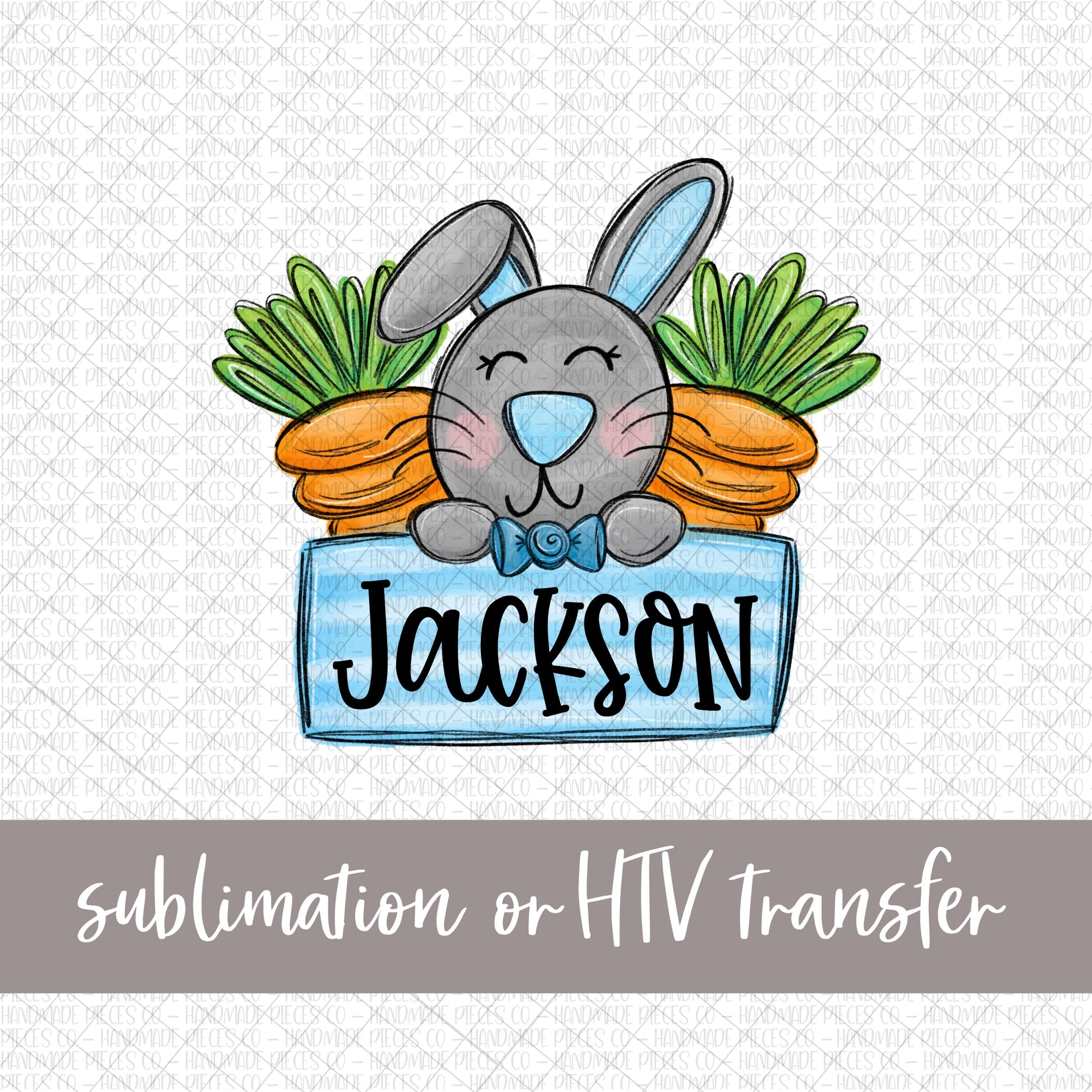 Bunny with Carrots, Blue with Name - Sublimation or HTV Transfer