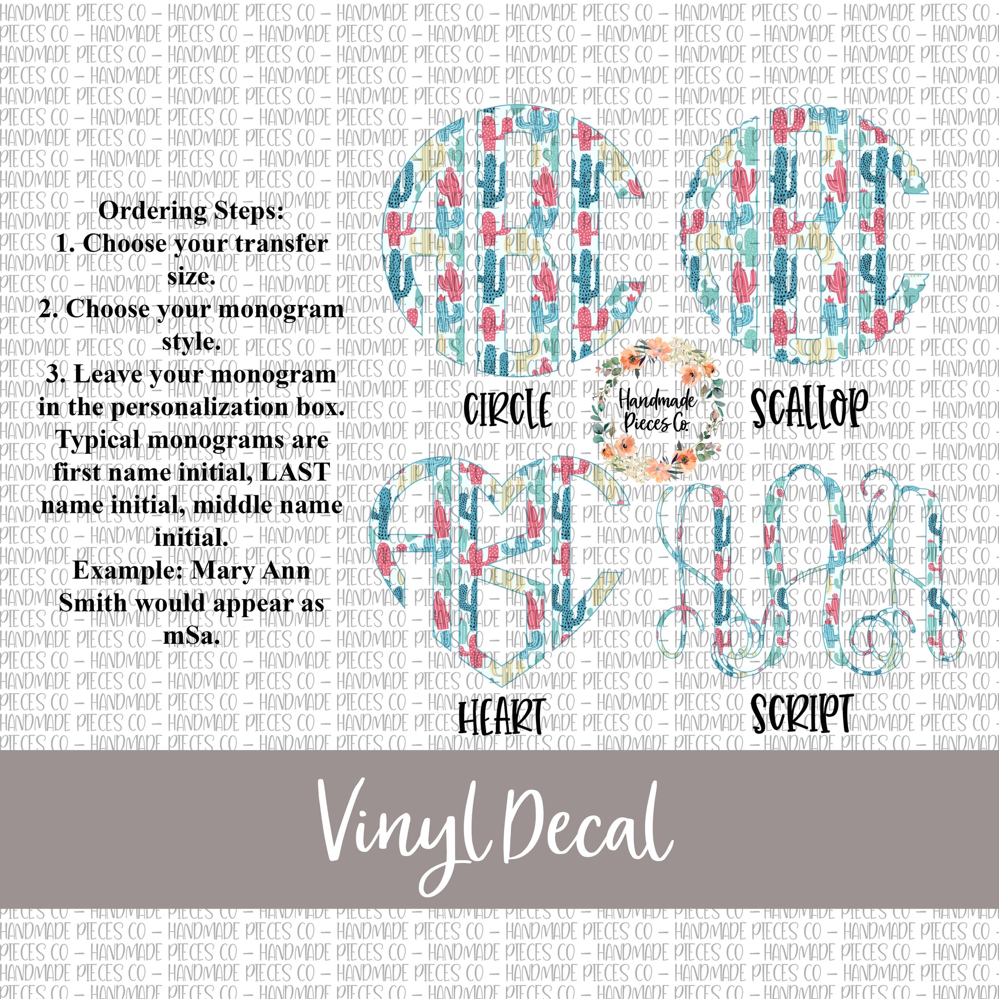 Cactus Monogram Vinyl Decal