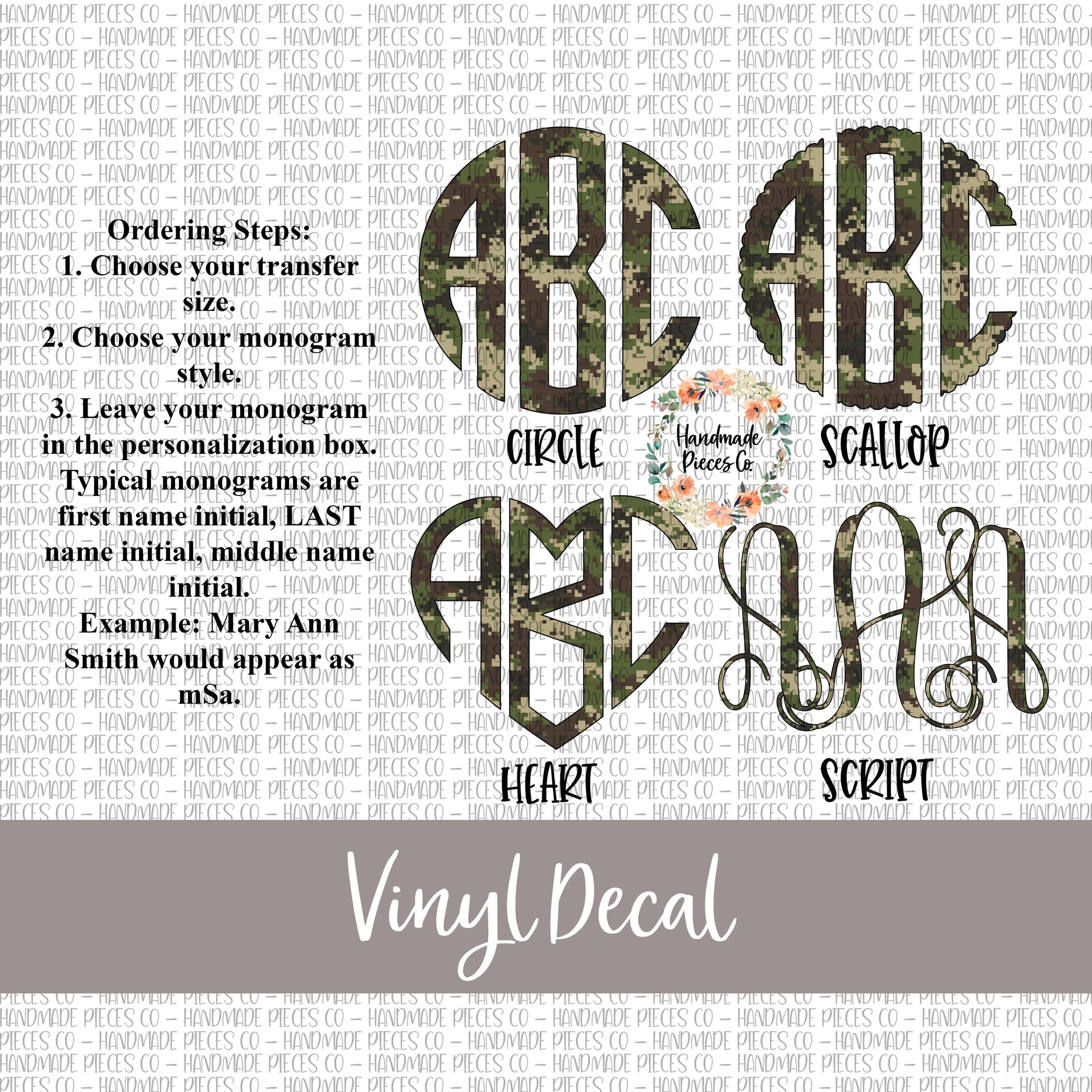 Camouflage Monogram Vinyl Decal, Woodland Camo