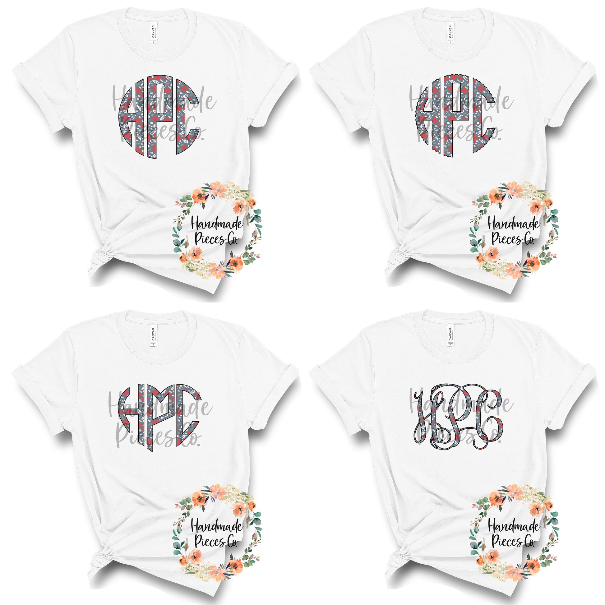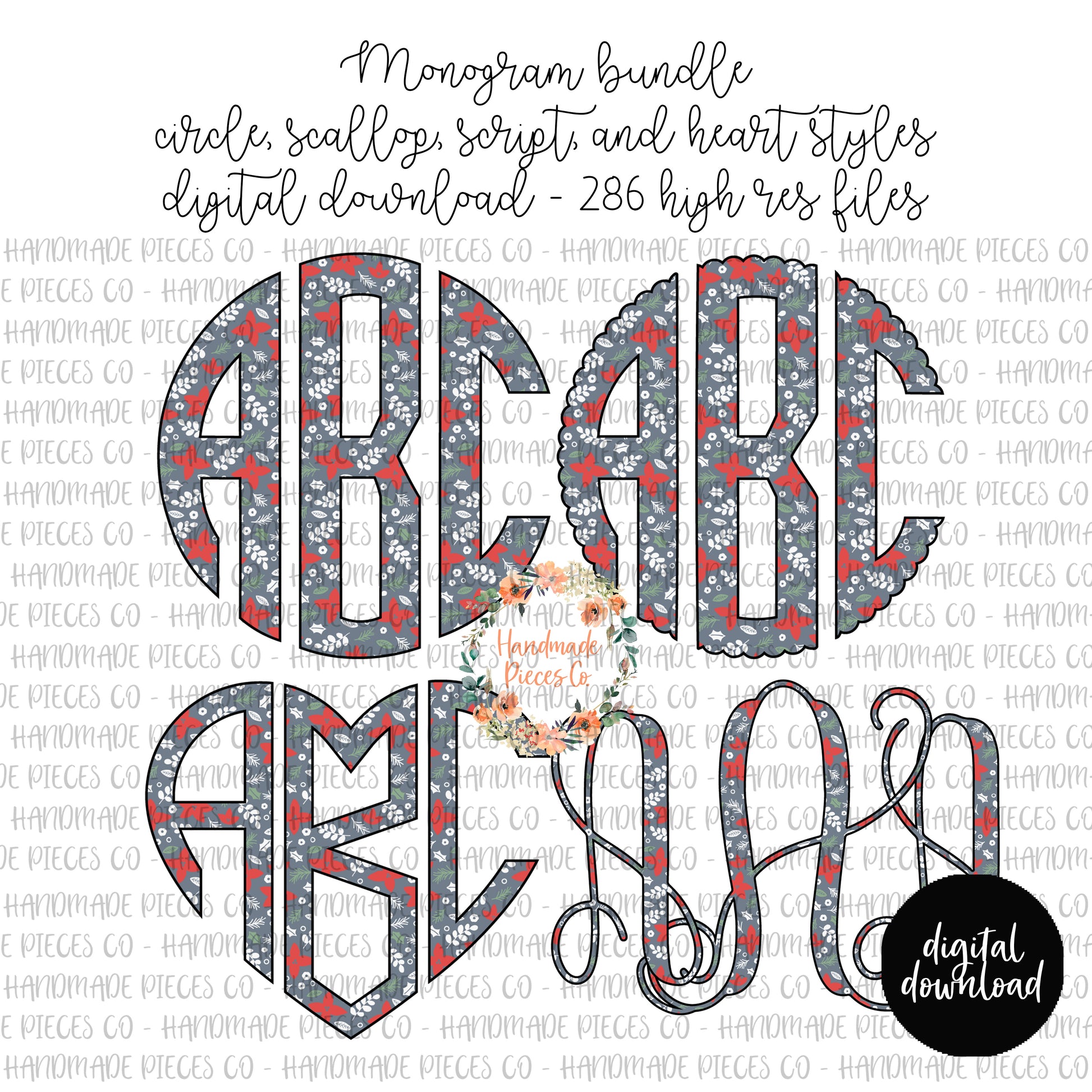 Christmas Monogram, Floral - Multiple Styles - Digital Download