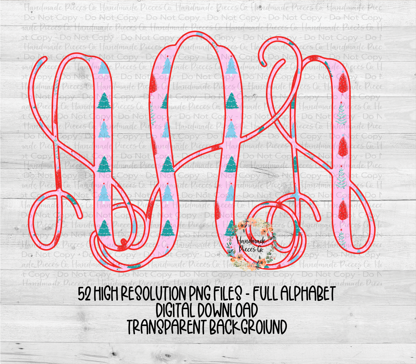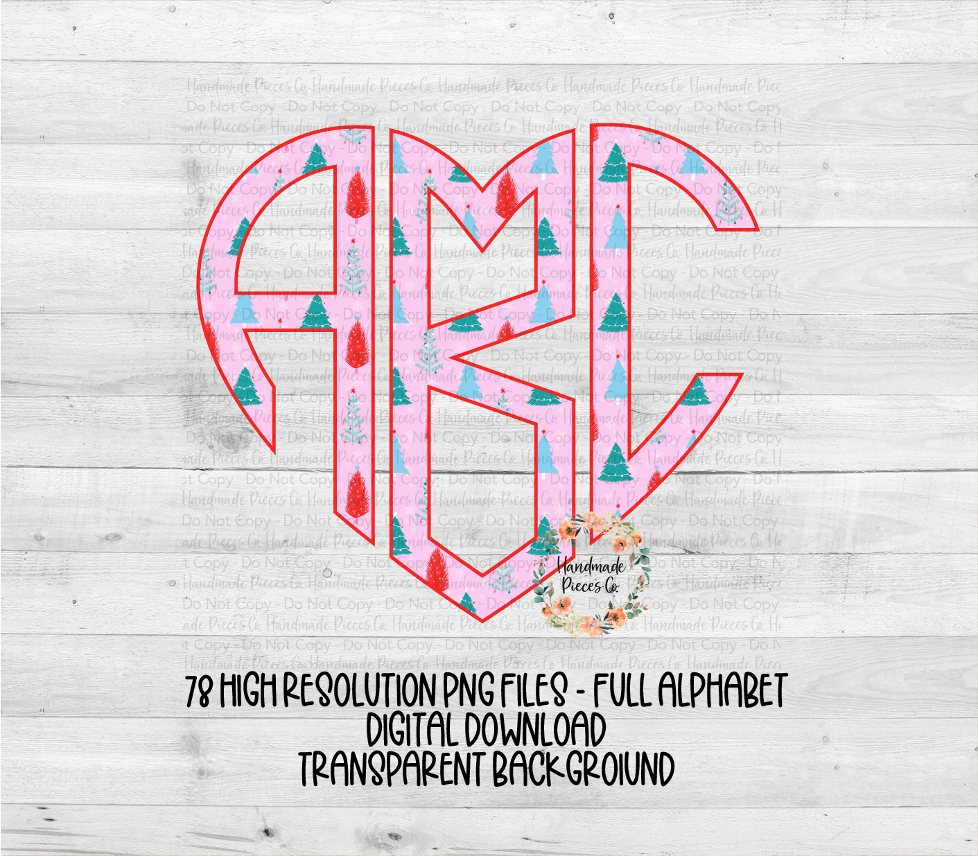 Christmas Monogram, Pink Trees - Multiple Styles - Digital Download