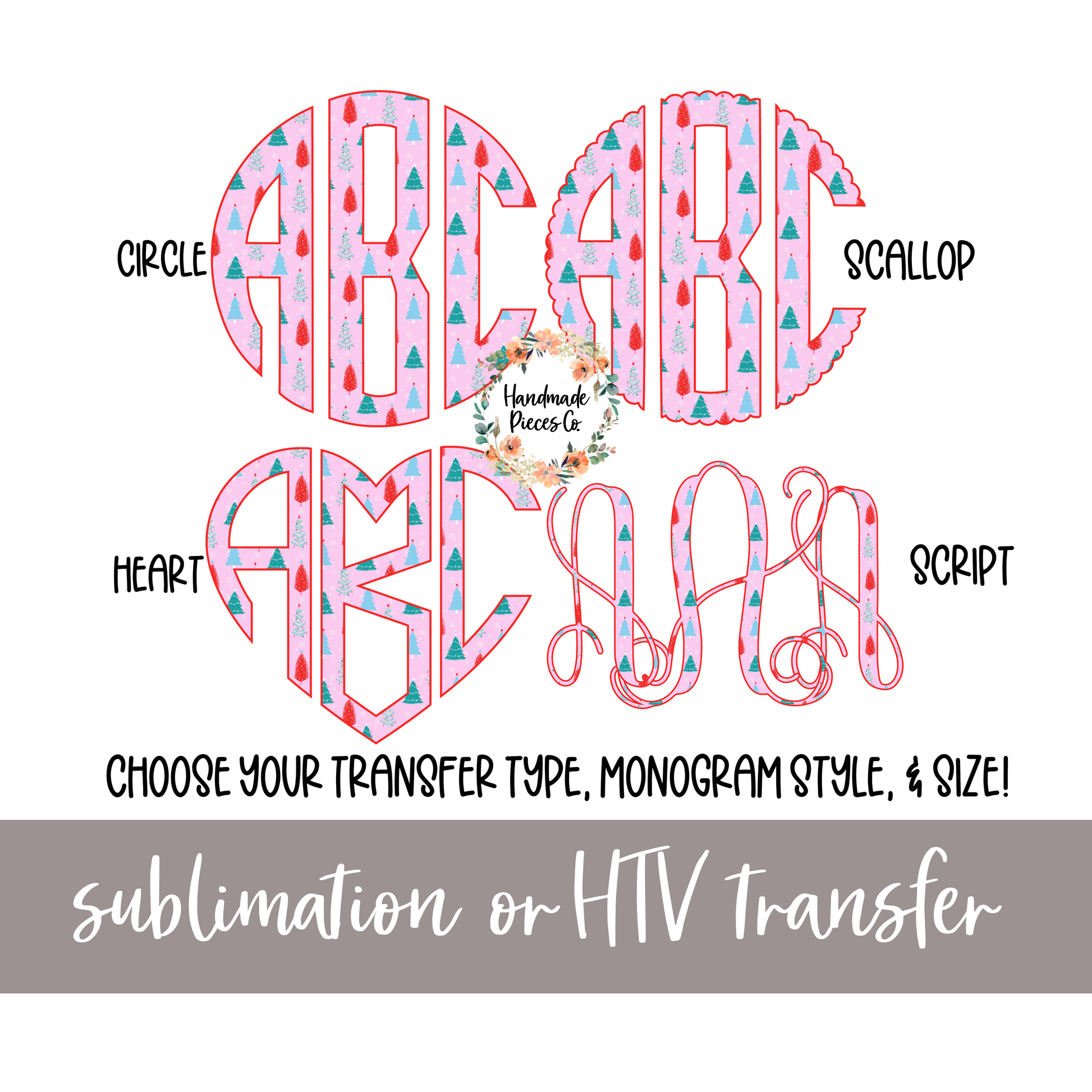 Christmas Monogram, Pink Trees - Sublimation or HTV Transfer