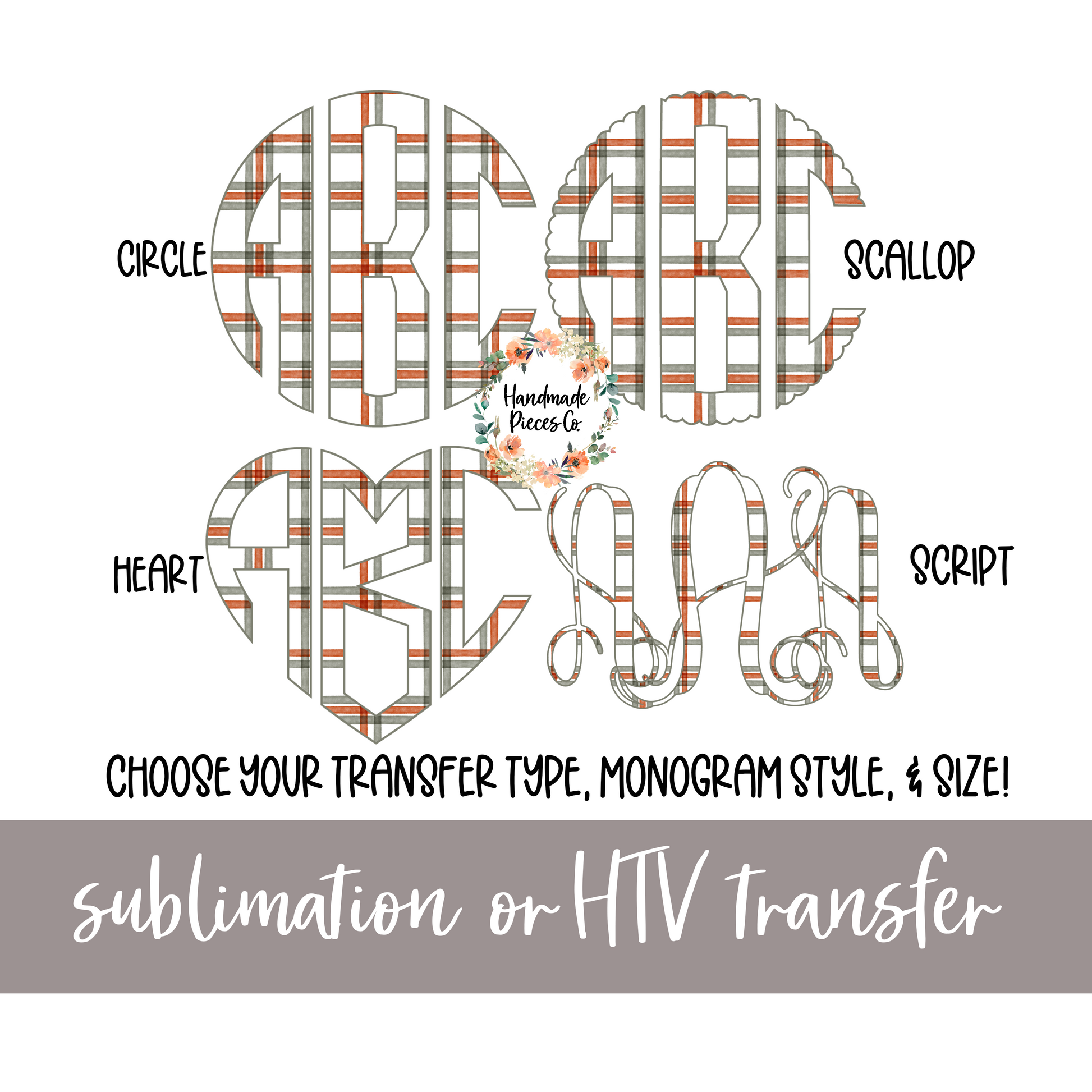 Christmas Monogram, Red and Green Plaid with Green Outline - Sublimation or HTV Transfer