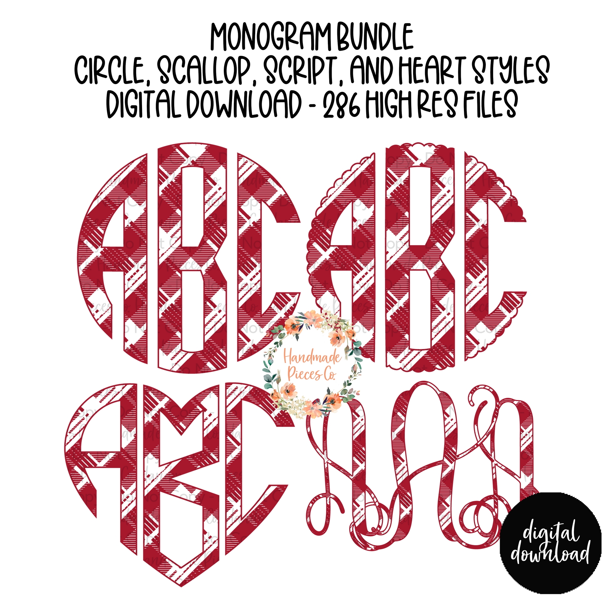 The circle, heart, and scallop monograms each have 78 PNG files per monogram (left, middle, and right for each letter).