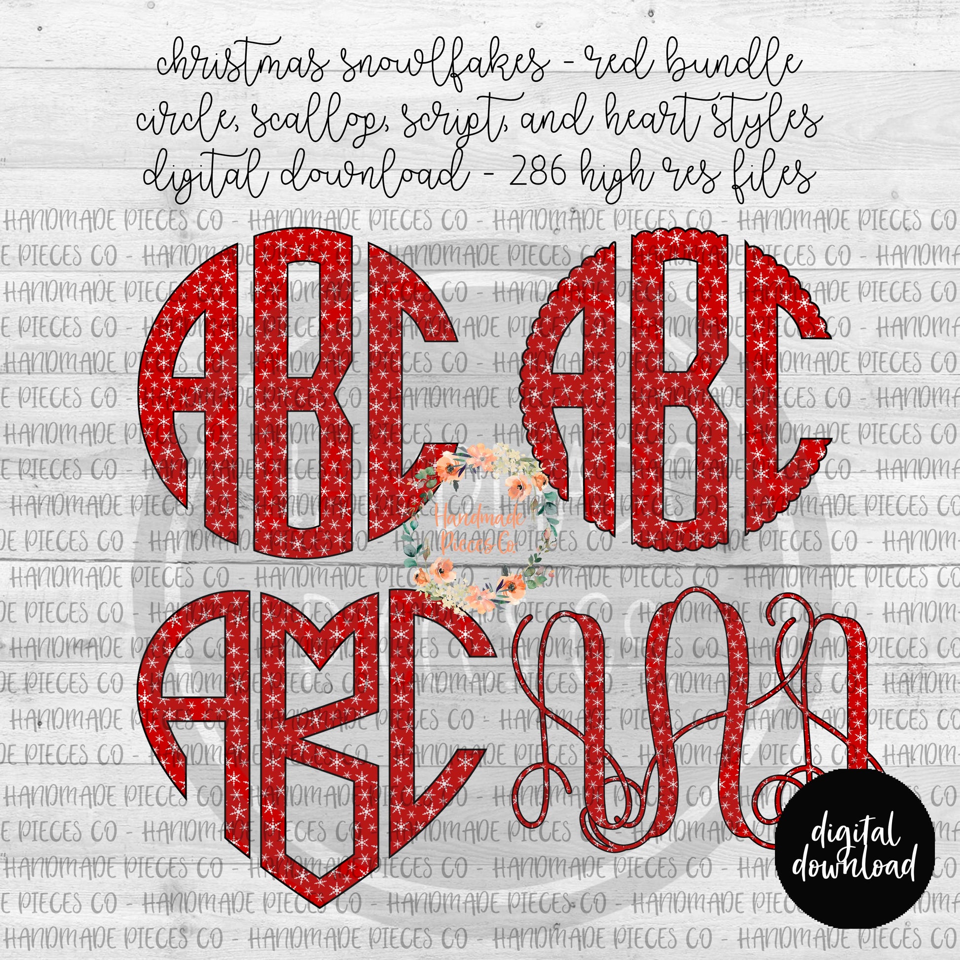 Christmas Snowflakes Monogram, Red- Multiple Styles - Digital Download