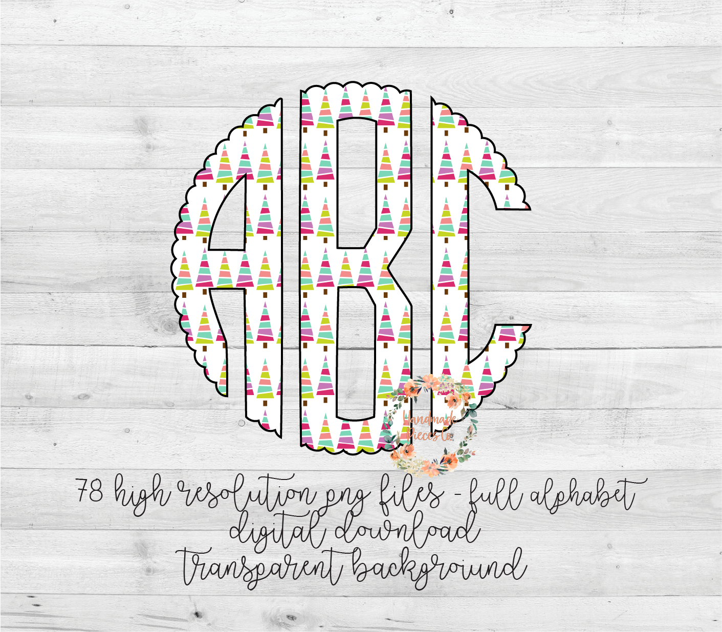 The circle, heart, and scallop monograms each have 78 PNG files per monogram (left, middle, and right for each letter).