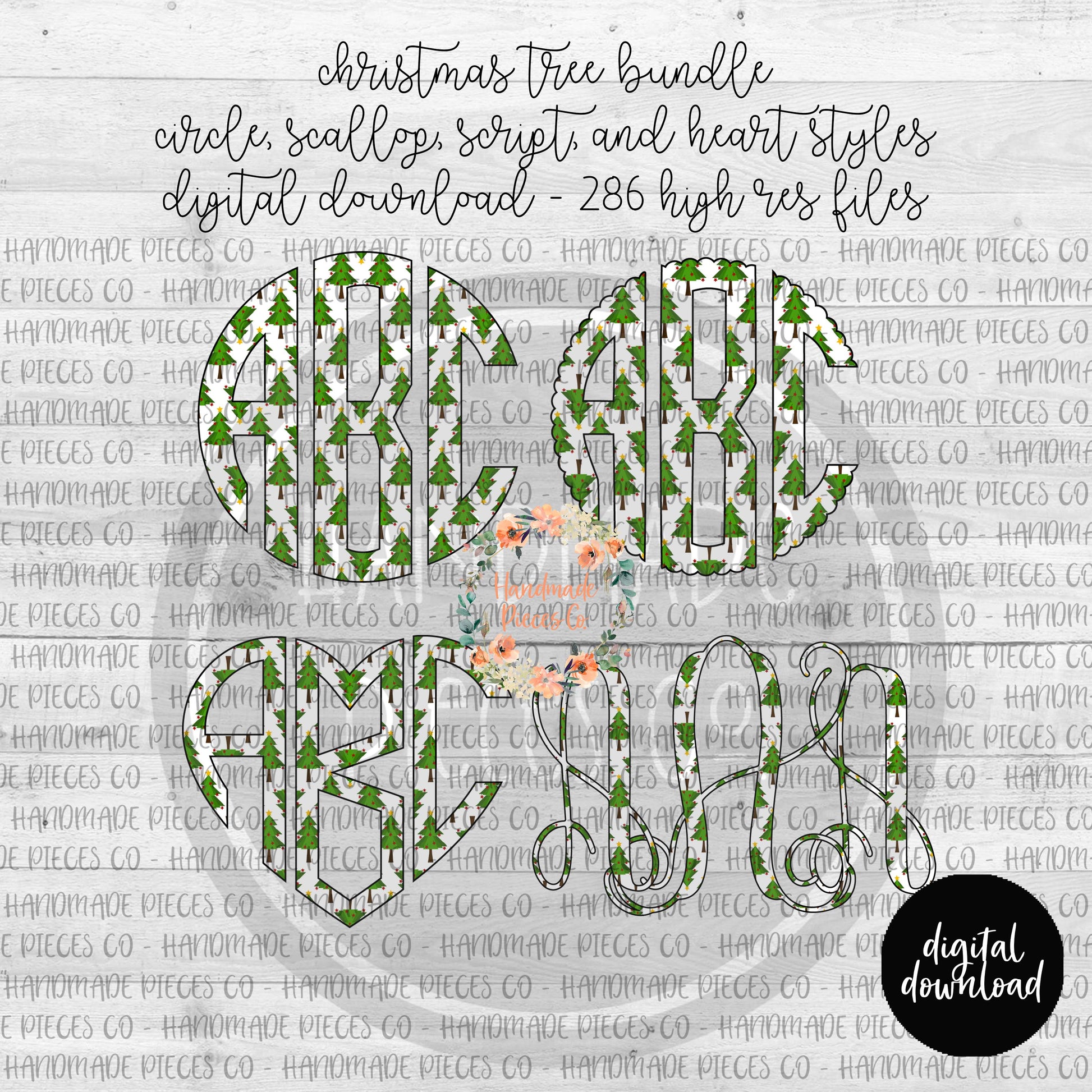 Christmas Trees Monogram - Multiple Styles - Digital Download