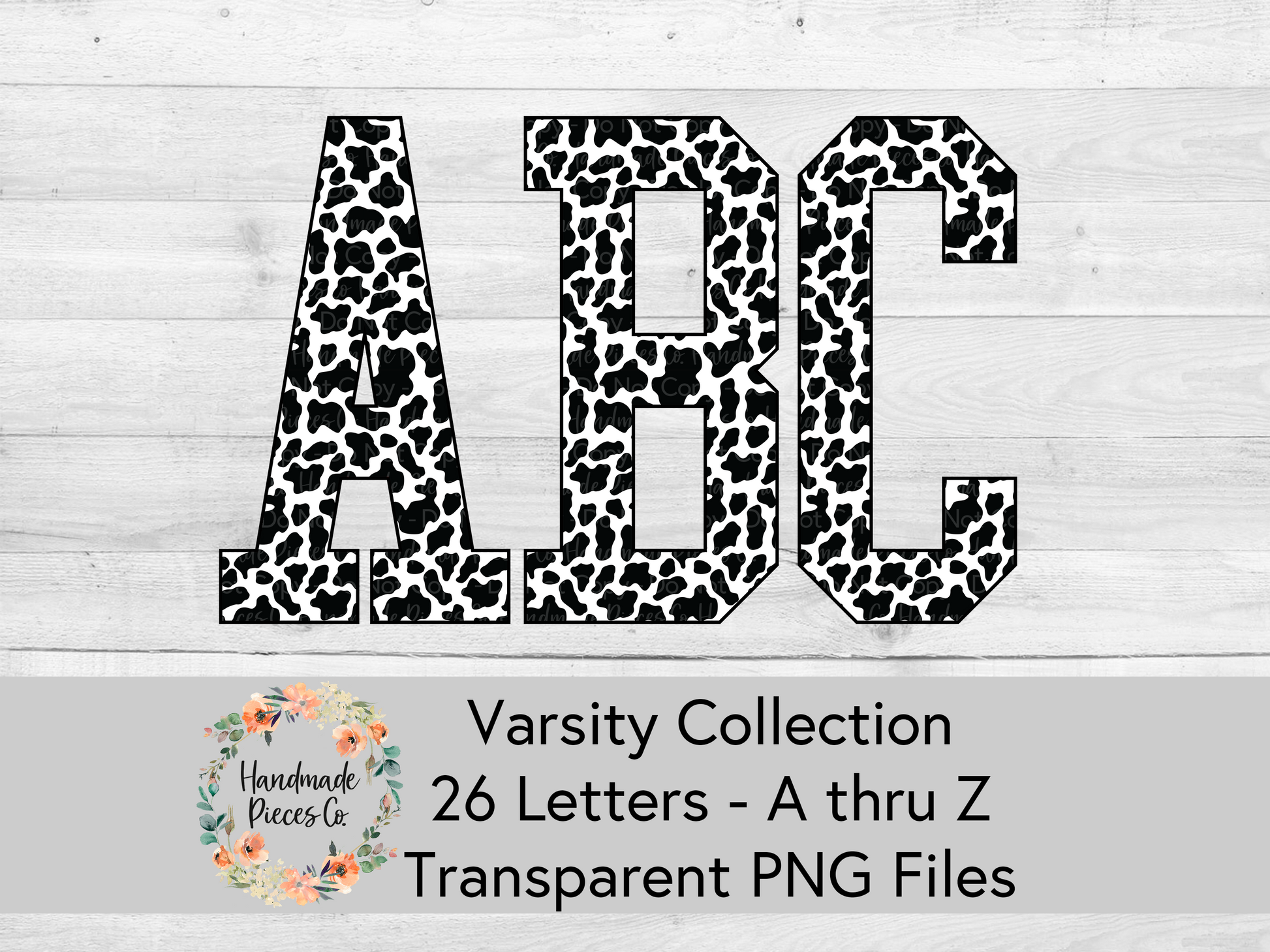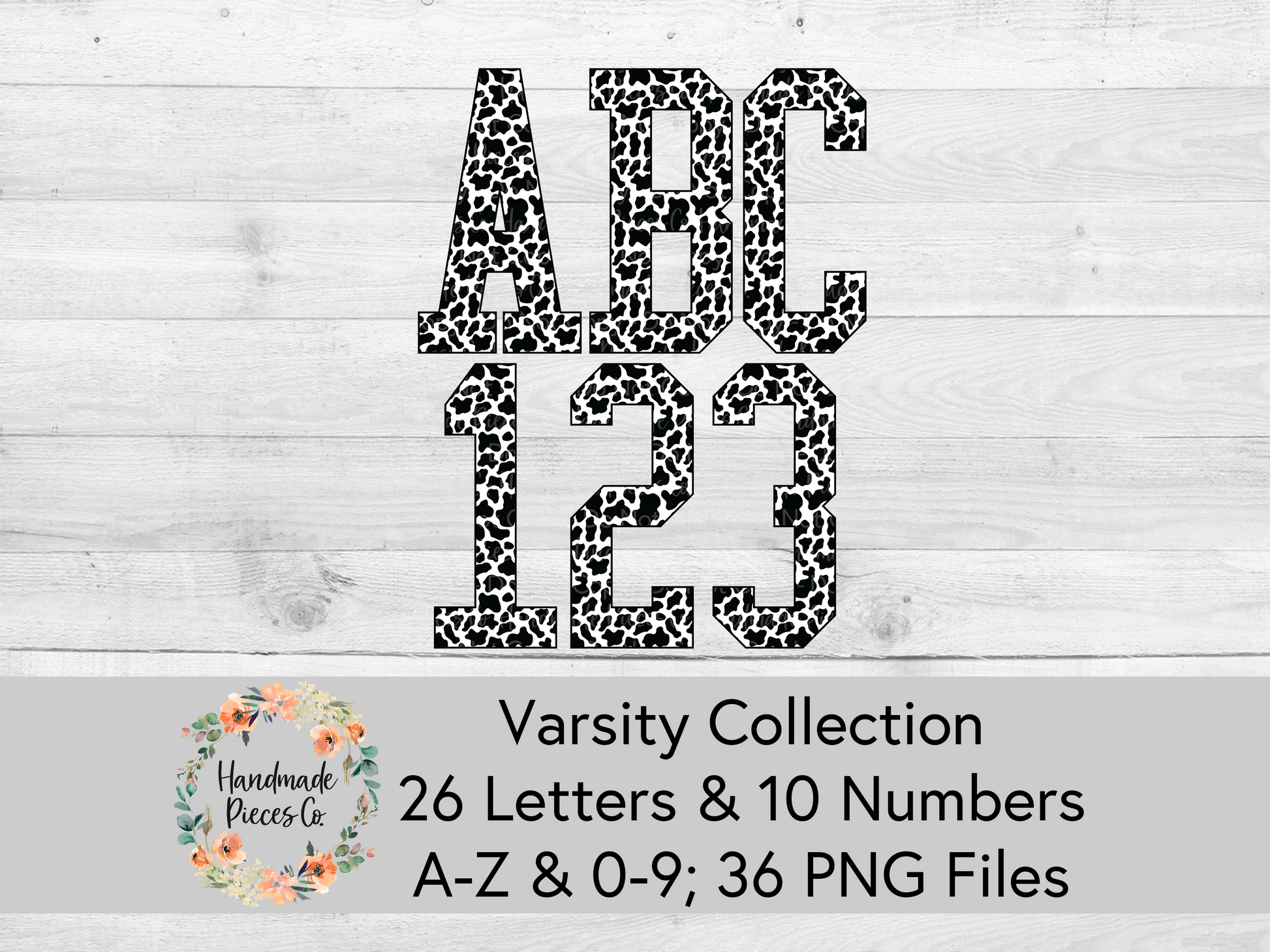 Cow, Black - Alpha and Number Set, Varsity Collection - Digital Download
