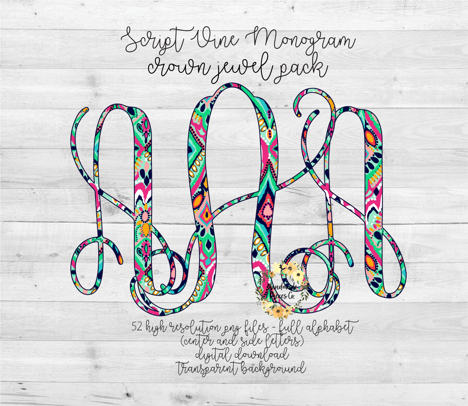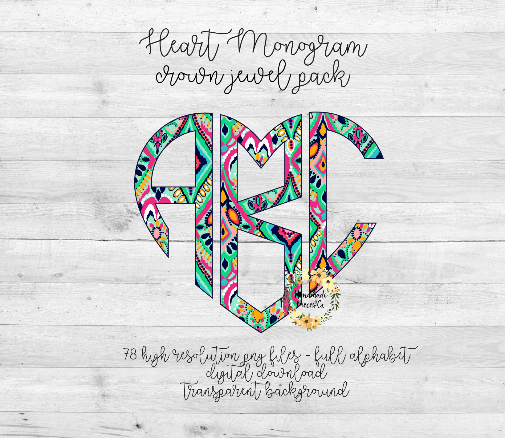The circle, heart, and scallop monograms each have 78 PNG files per monogram (left, middle, and right for each letter).