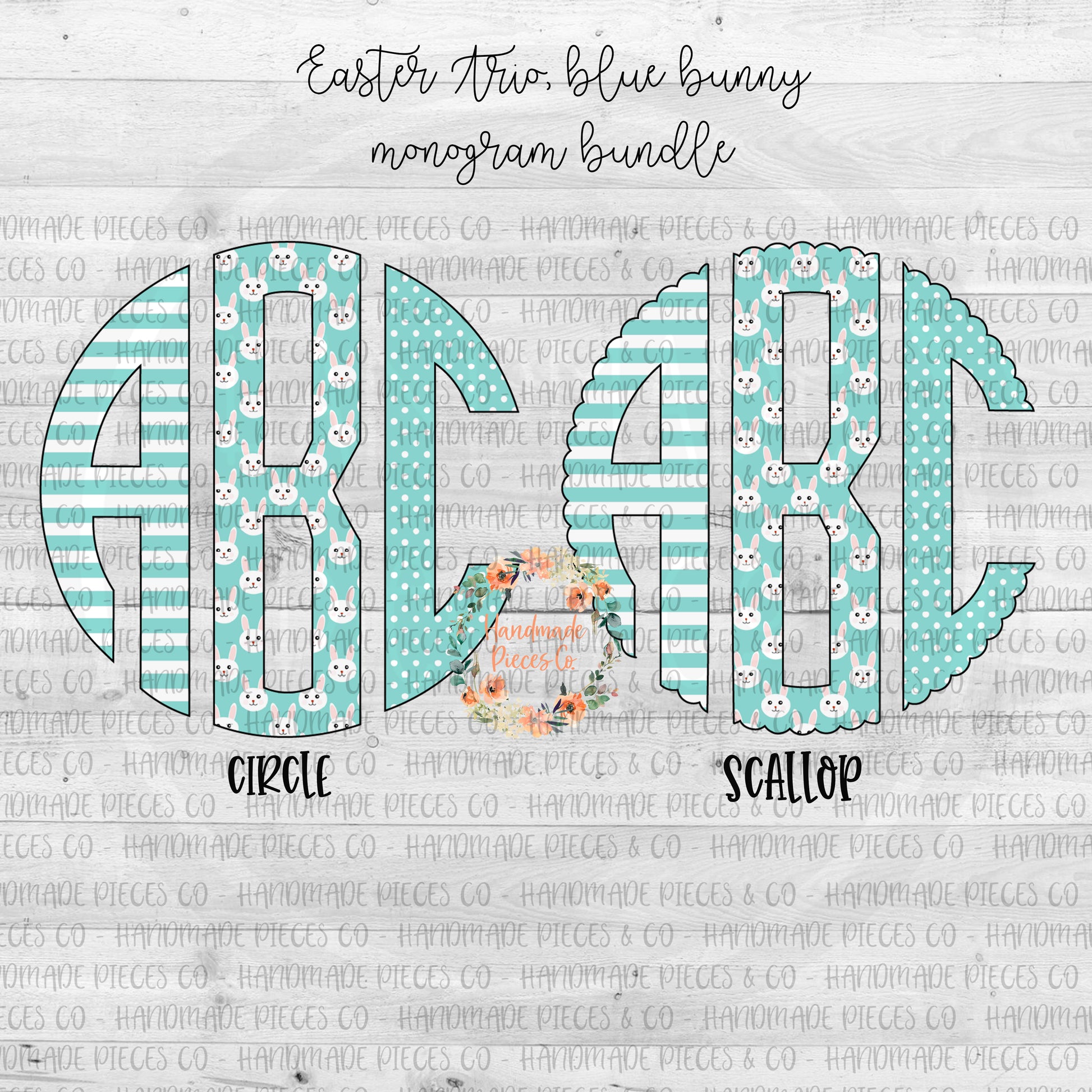 Easter Trio Monogram, Easter Bunny Blue - Multiple Styles - Digital Download