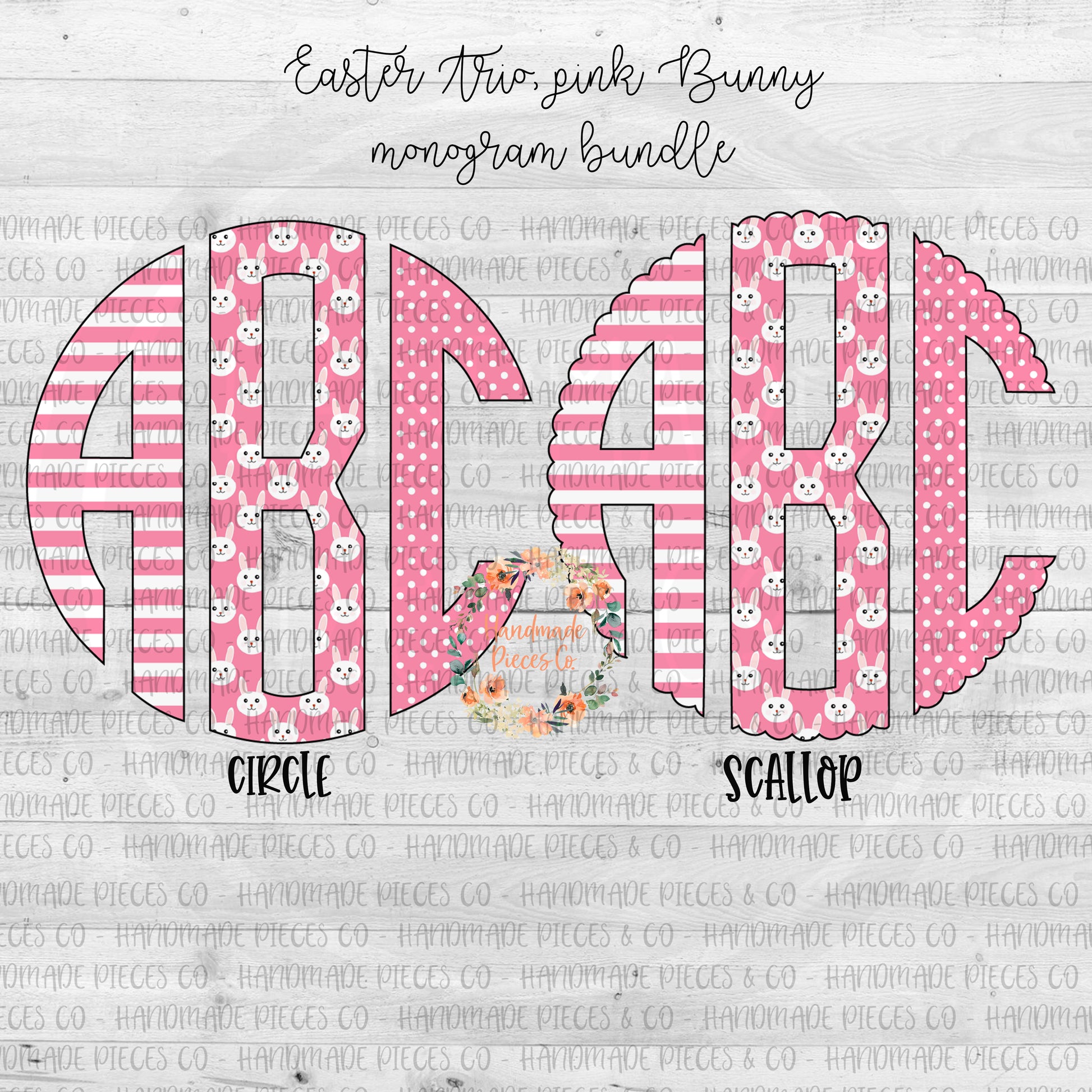 Easter Trio Monogram, Easter Bunny Pink - Multiple Styles - Digital Download