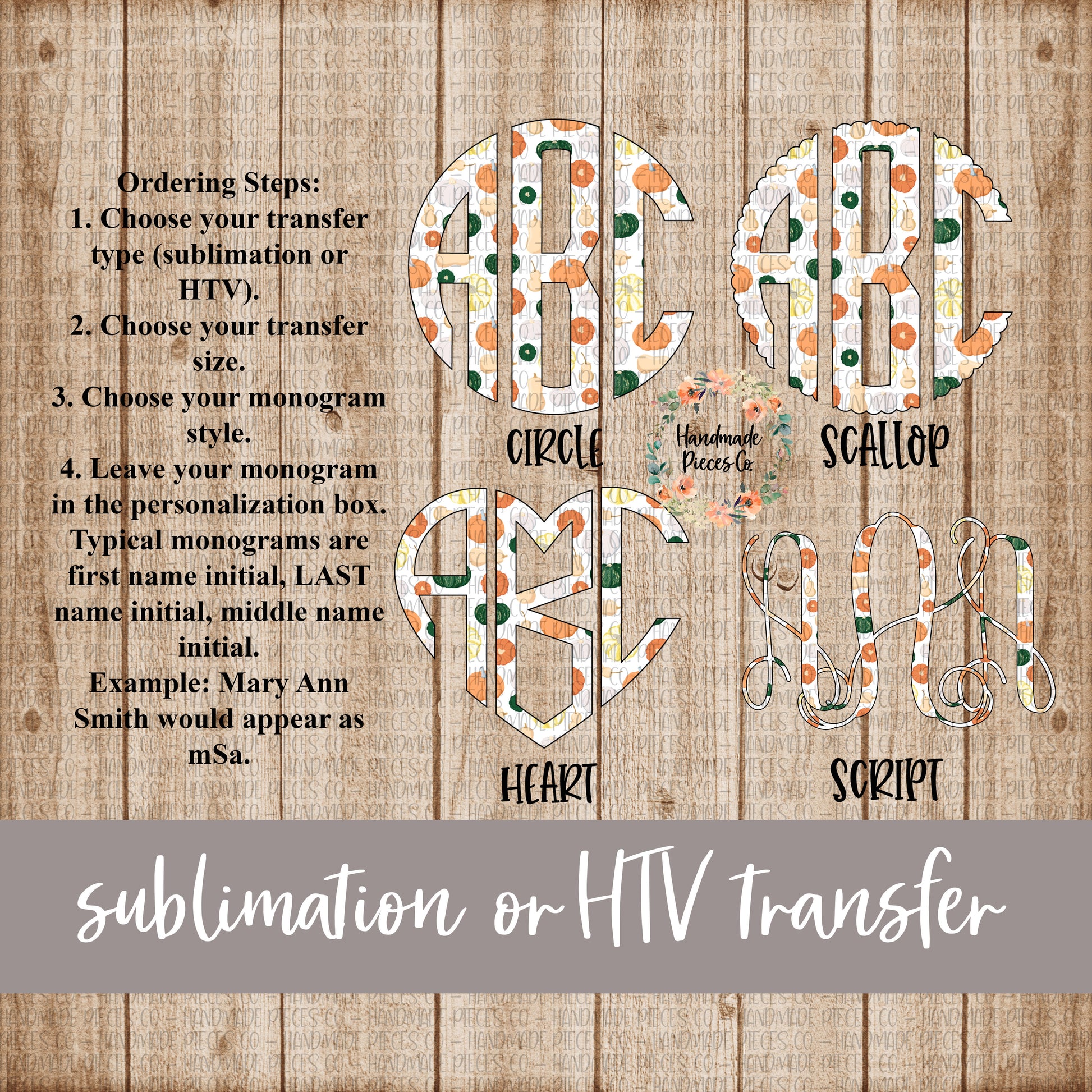Fall Pumpkins Monogram - Sublimation or HTV Transfer