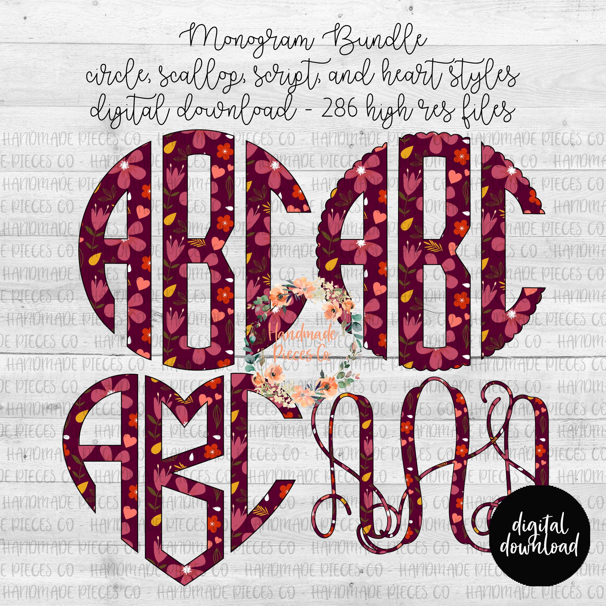 Floral Monogram, Floral 3 Berry - Multiple Styles - Digital Download
