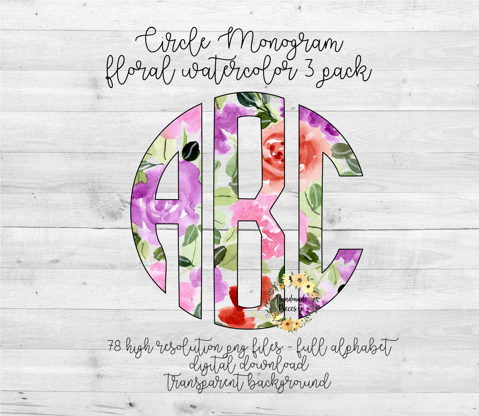 Floral Watercolor 3 Monogram - Multiple Styles - Digital Download