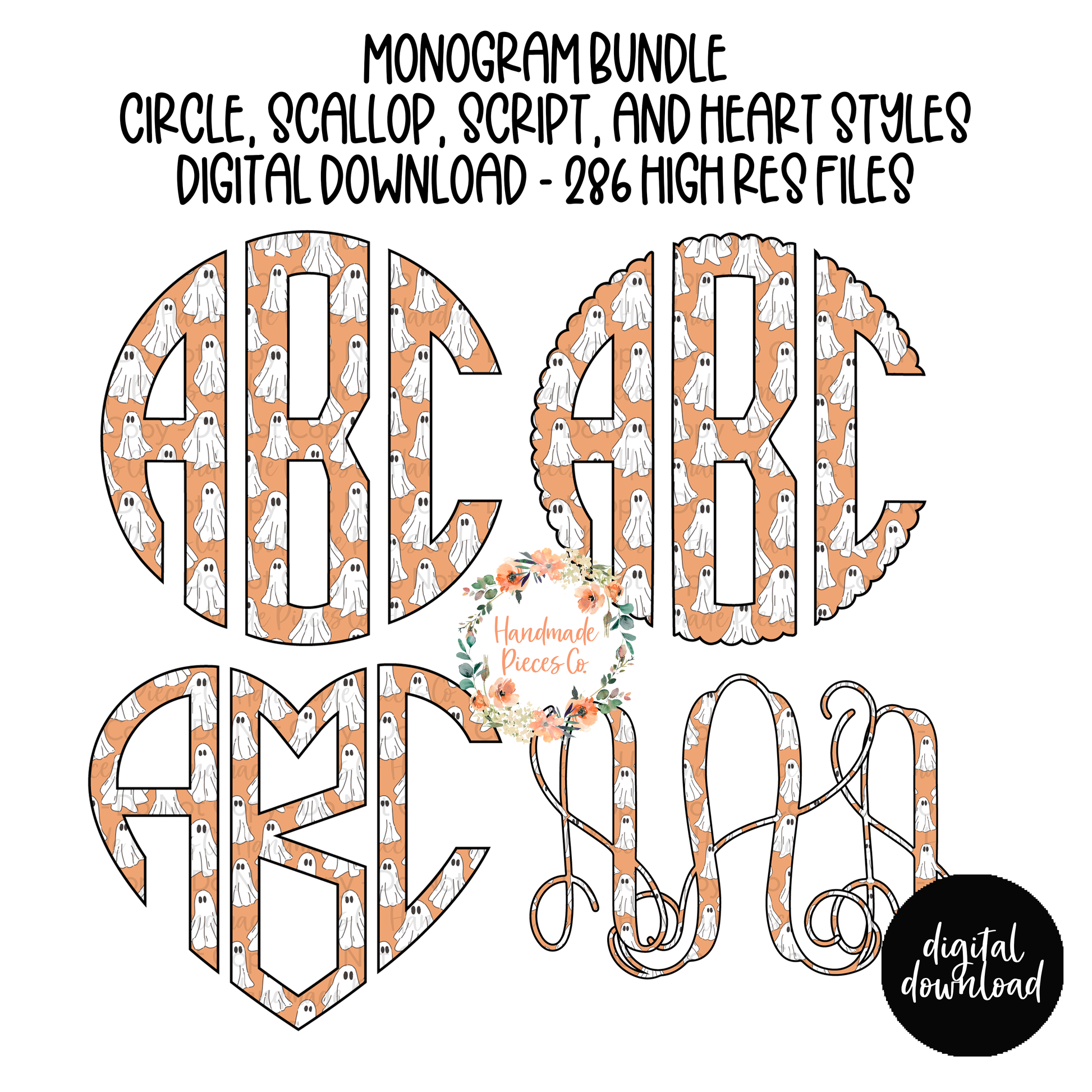 Ghosts Monogram, Orange - Multiple Styles - Digital Download