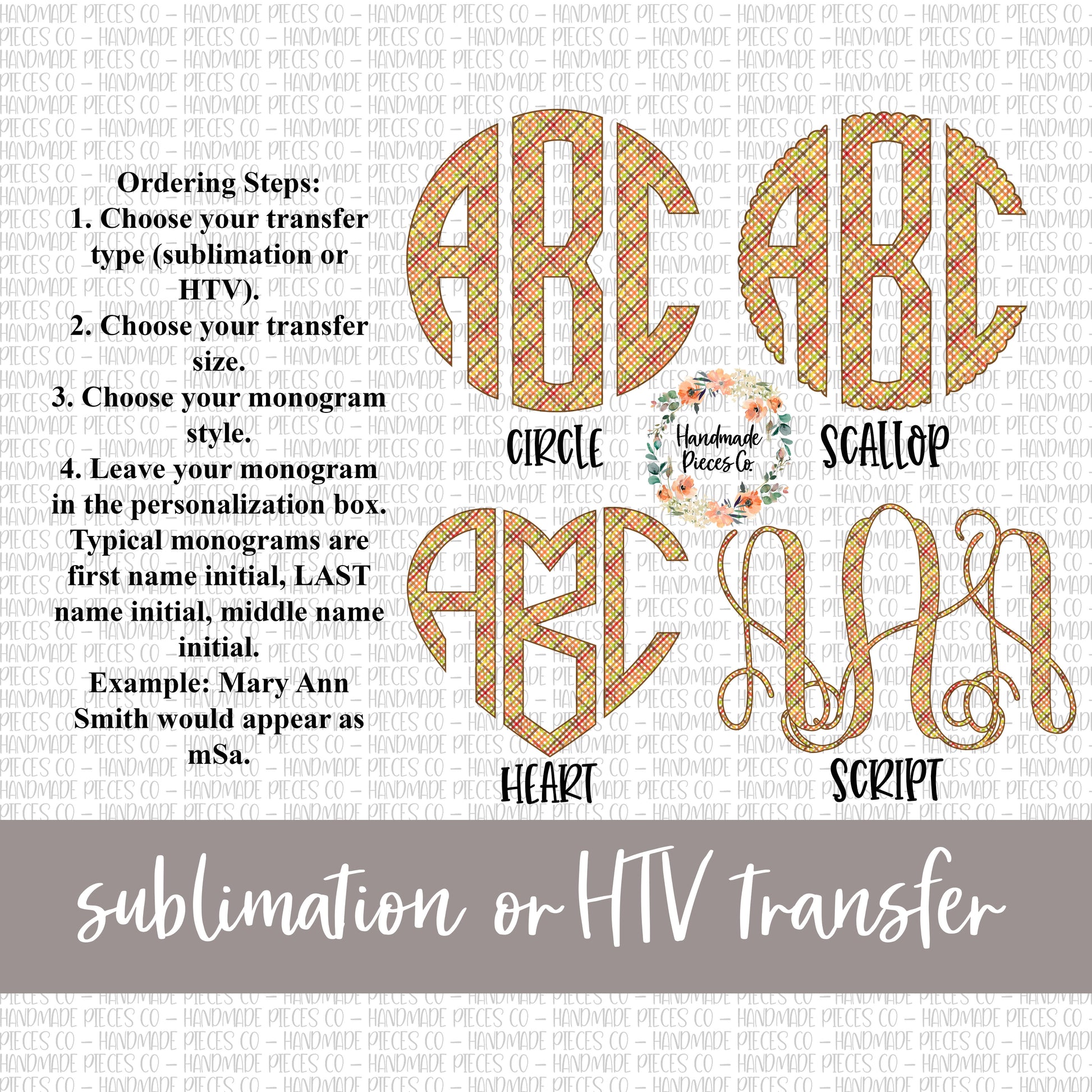 Gingham Fall Monogram - Sublimation or HTV Transfer