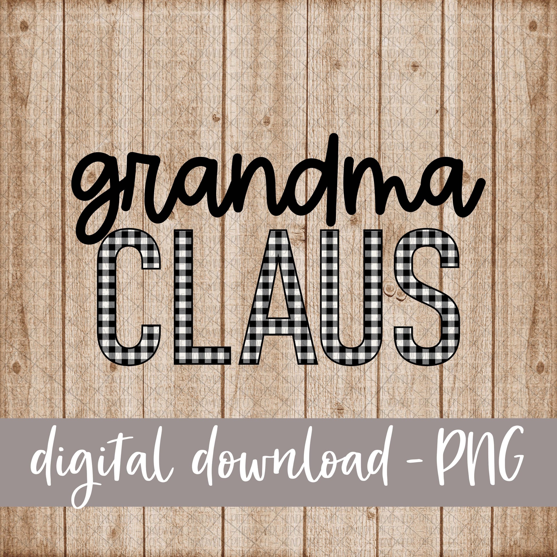 Grandma Claus, White Black Buffalo Plaid - Digital Download