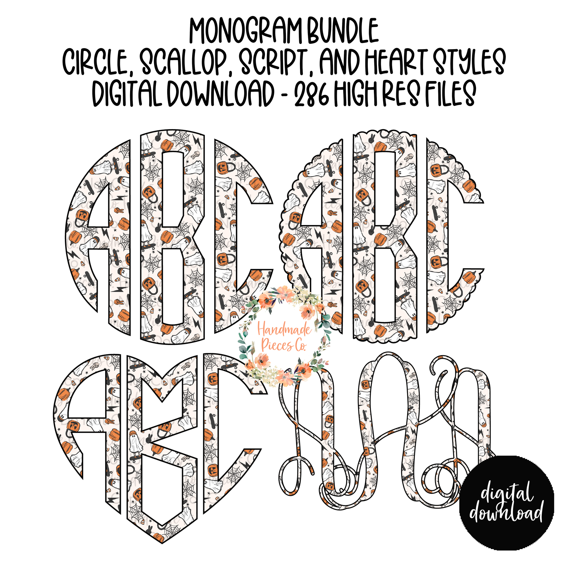 The circle, heart, and scallop monograms each have 78 PNG files per monogram (left, middle, and right for each letter).