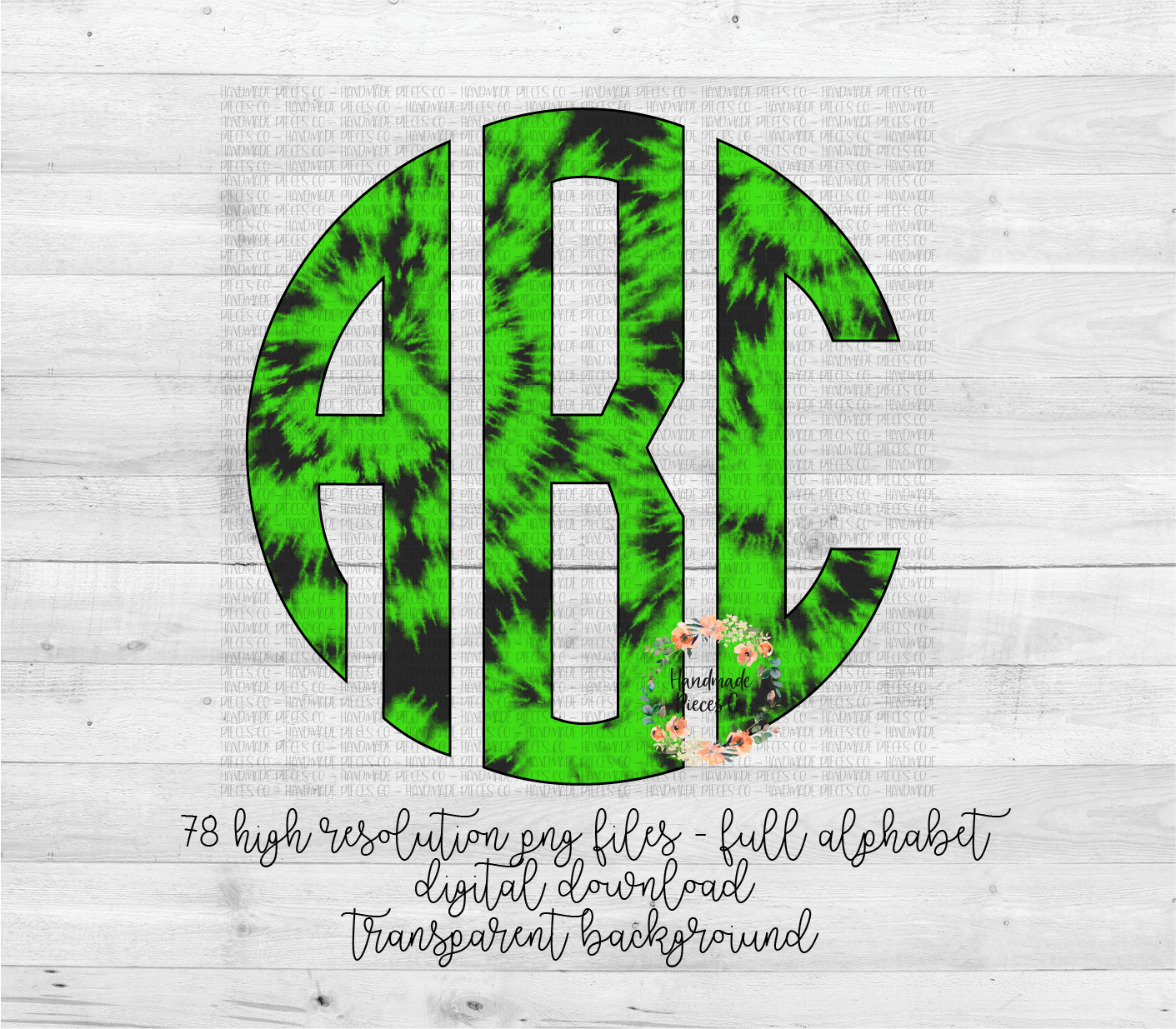 Halloween Tie Dye Monogram, Green - Multiple Styles - Digital Download