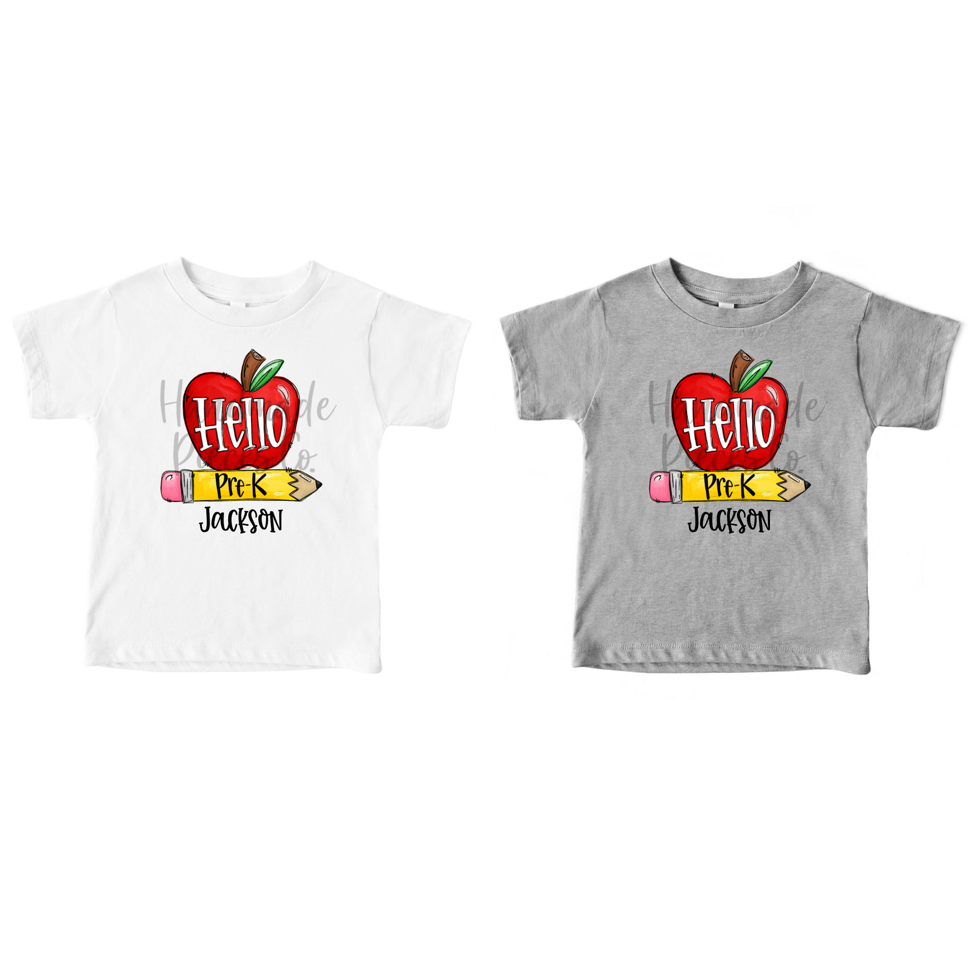 Hello Pre-K, Apple and Pencil - Name Optional - Sublimation or HTV Transfer