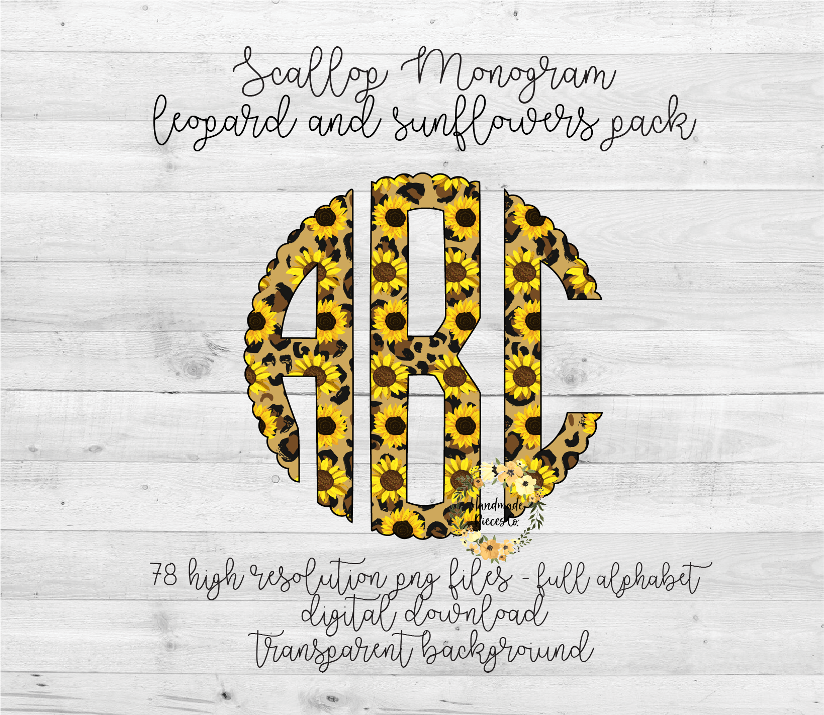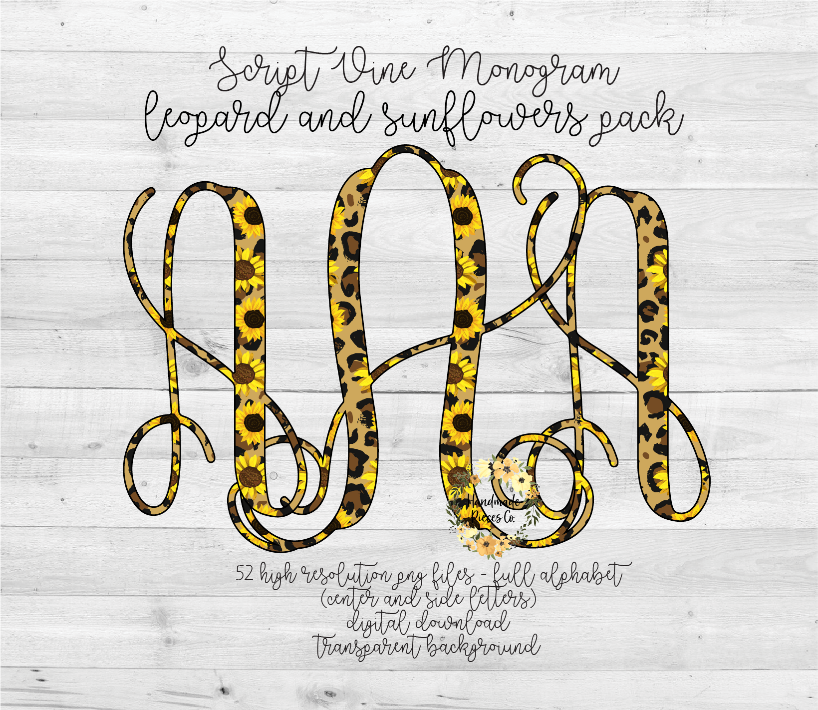 Leopard and Sunflowers Monogram - Multiple Styles - Digital Download