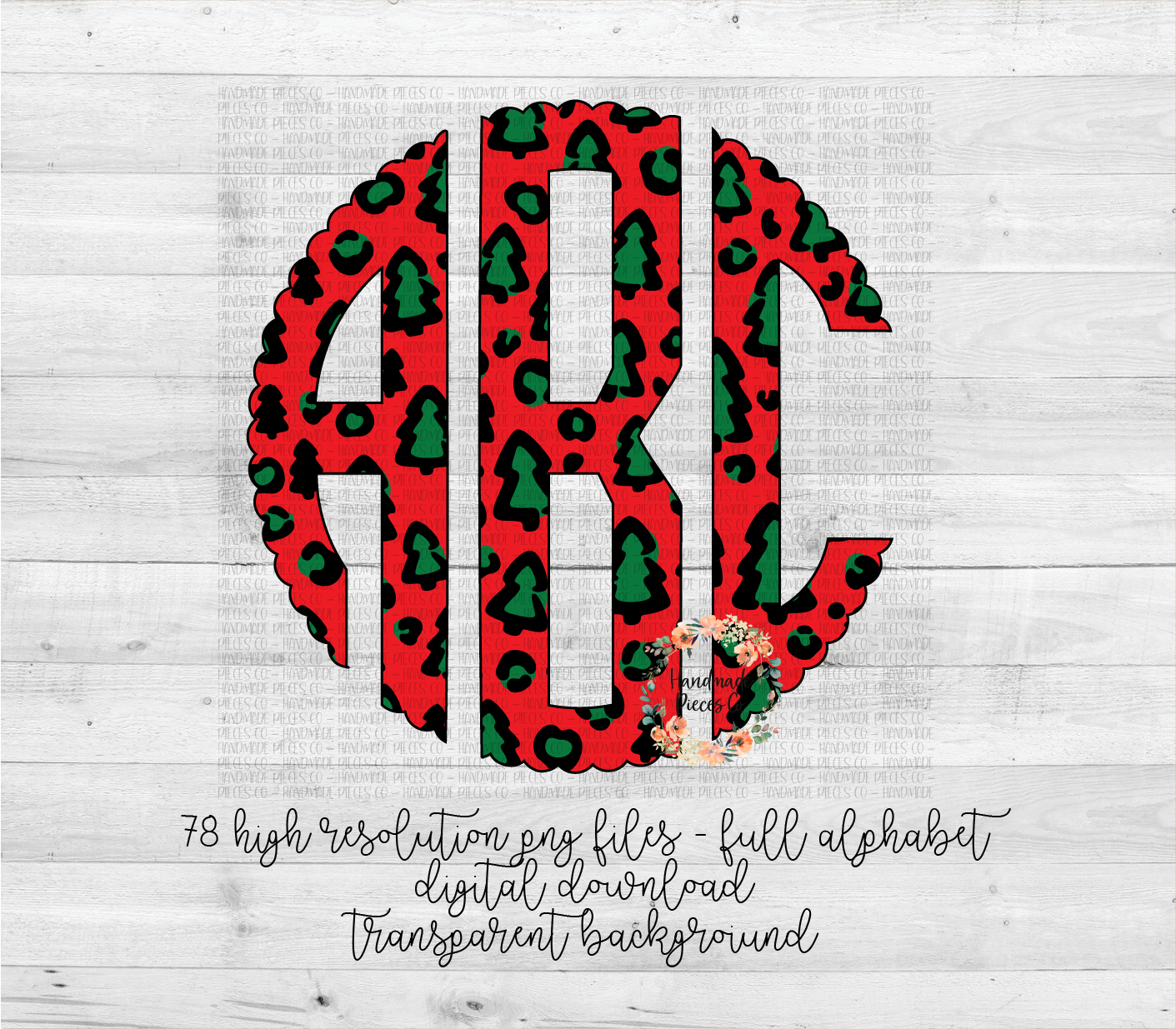 The circle and scallops monogram will each have 78 PNG files per monogram (left, middle, and right for each letter).