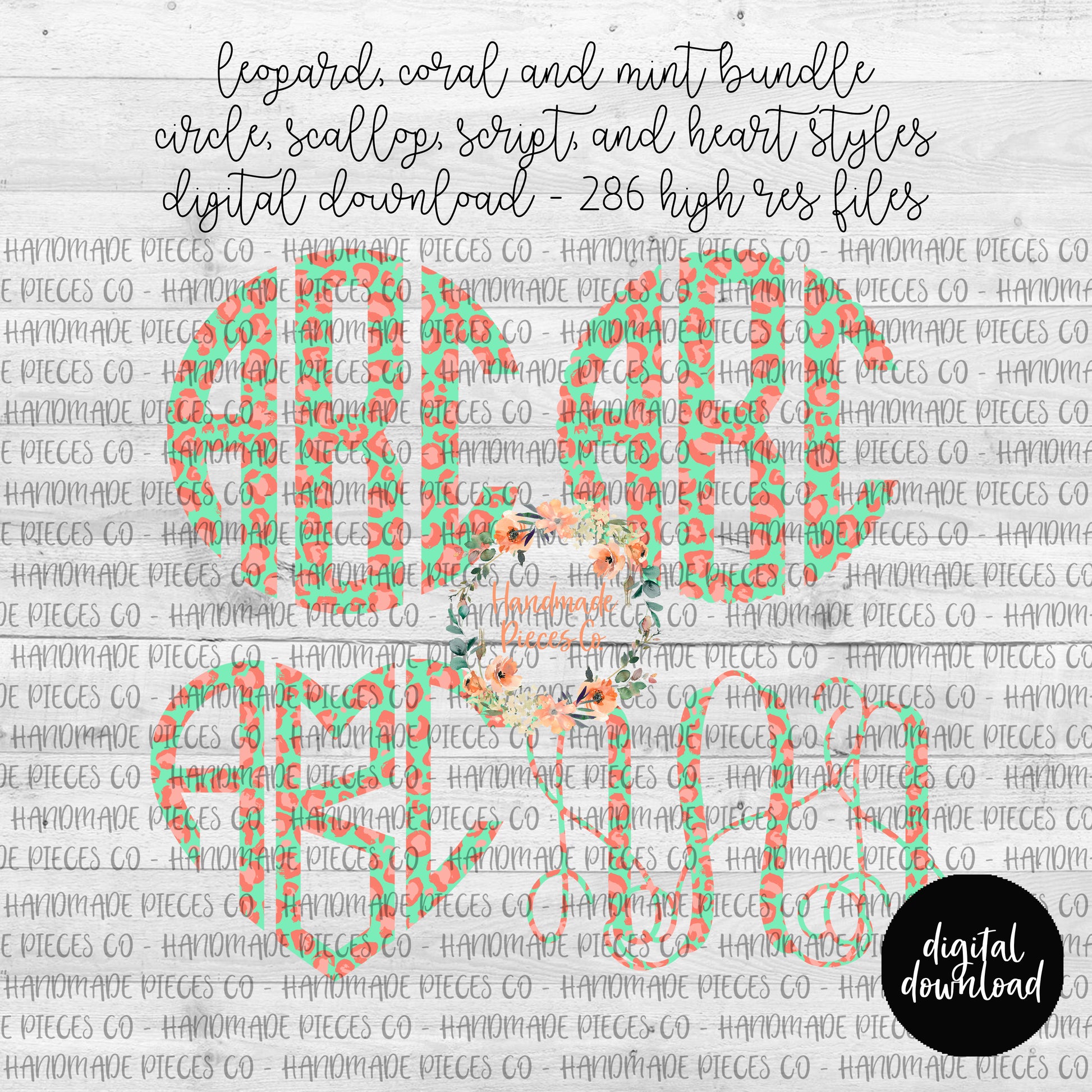 The circle, heart, and scallop monograms each have 78 PNG files per monogram (left, middle, and right for each letter).