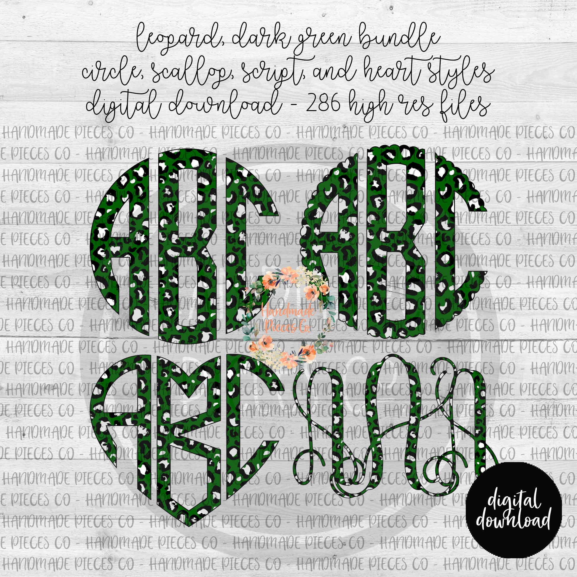 Leopard, Dark Green Monogram - Multiple Styles - Digital Download
