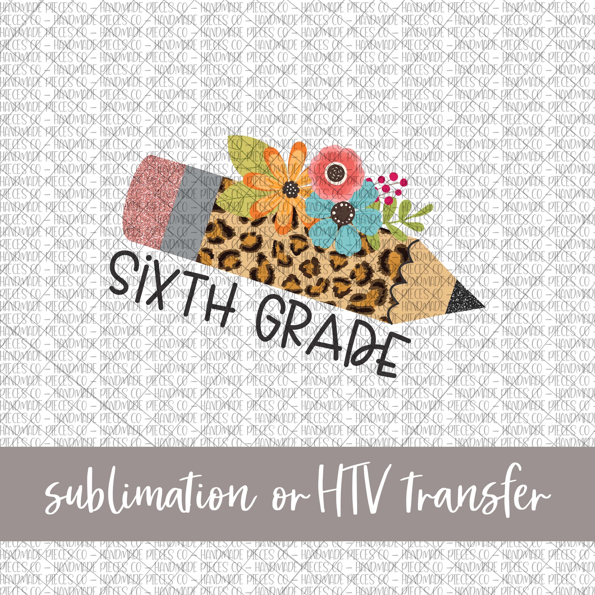 Leopard Floral Pencil, Sixth - Sublimation or HTV Transfer