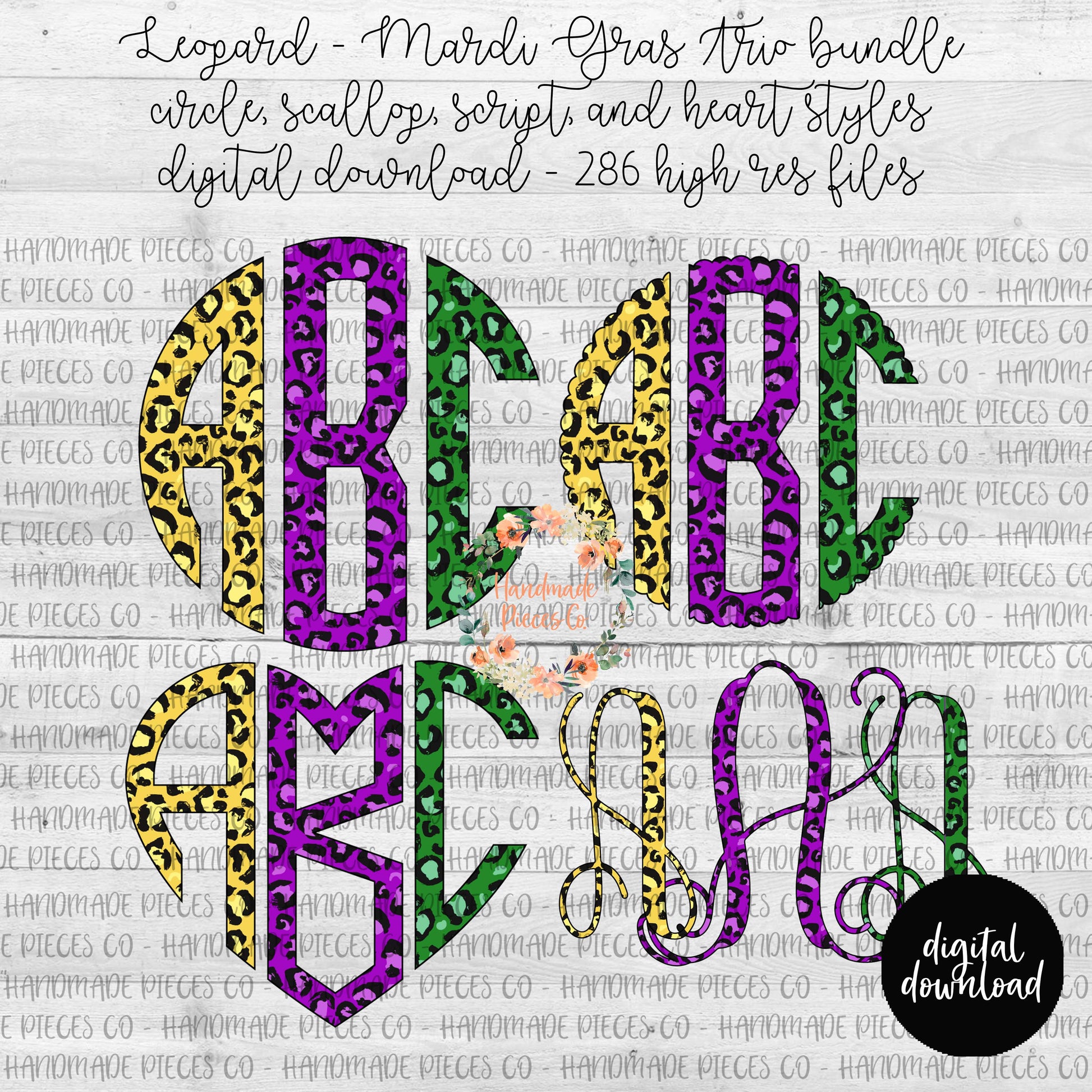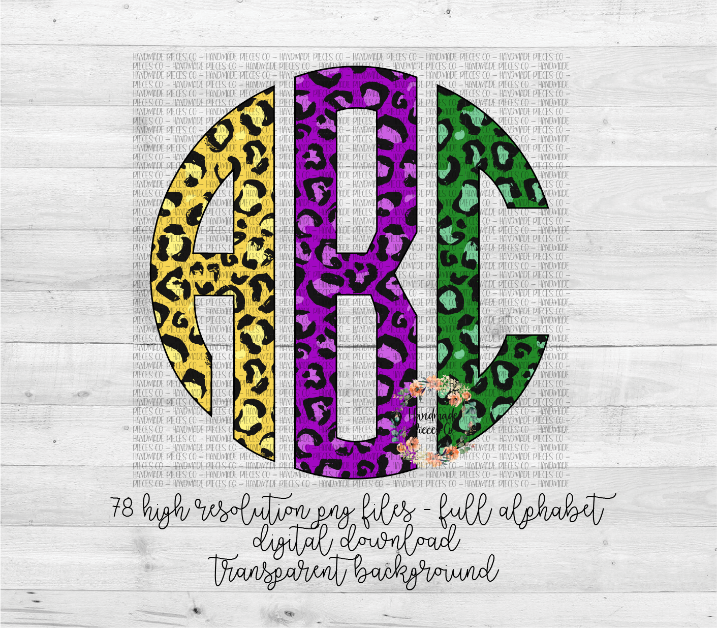 Leopard Monogram, Mardi Gras Trio - Multiple Styles - Digital Download