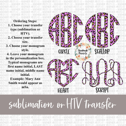 Leopard Monogram, Pink Gold Glitter - Sublimation or HTV Transfer