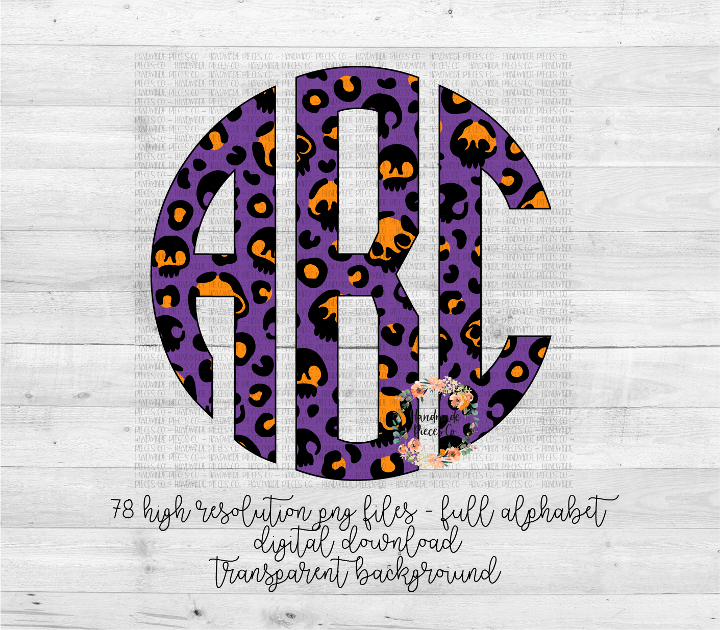 Leopard Skulls Monogram, Orange Skull - Multiple Styles - Digital Download