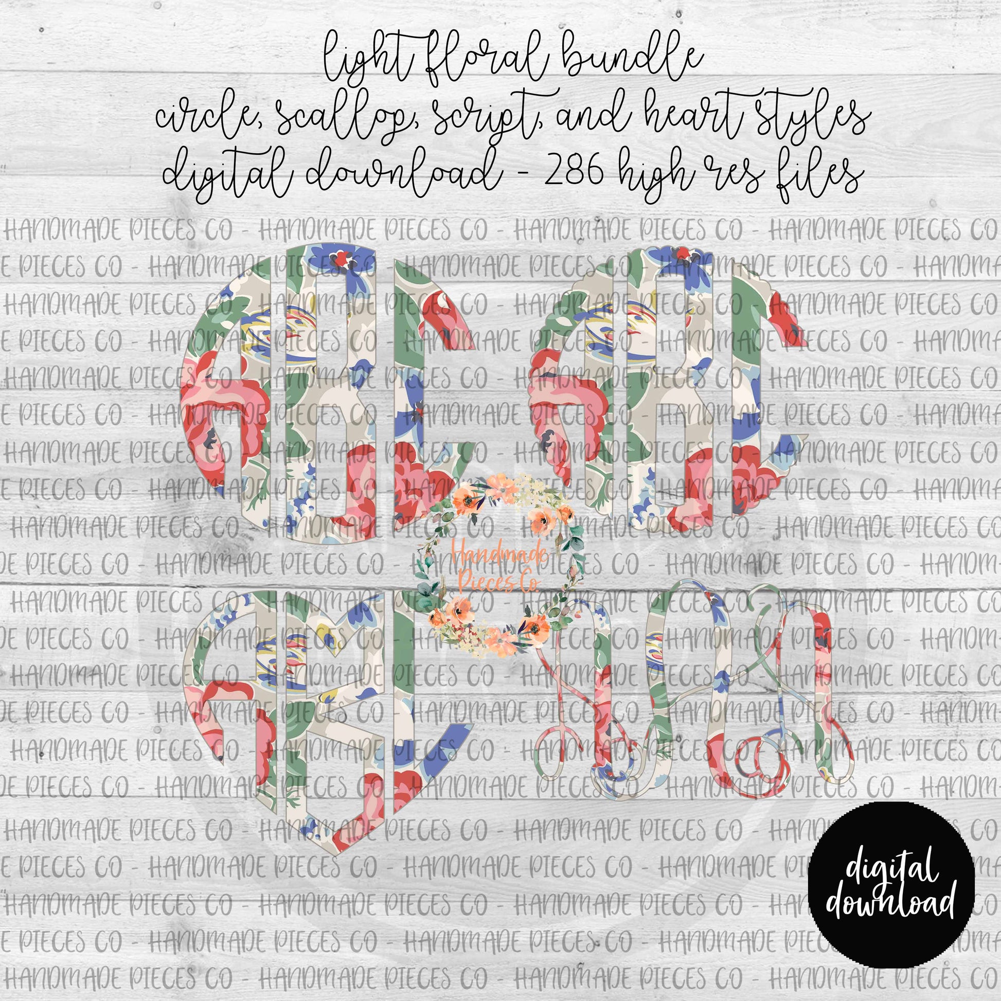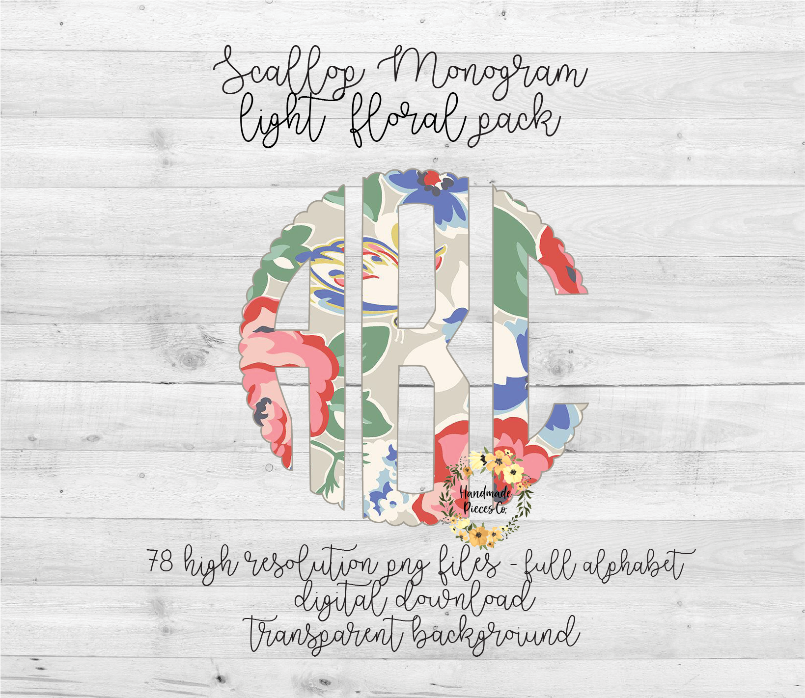 The circle, heart, and scallop monograms each have 78 PNG files per monogram (left, middle, and right for each letter).