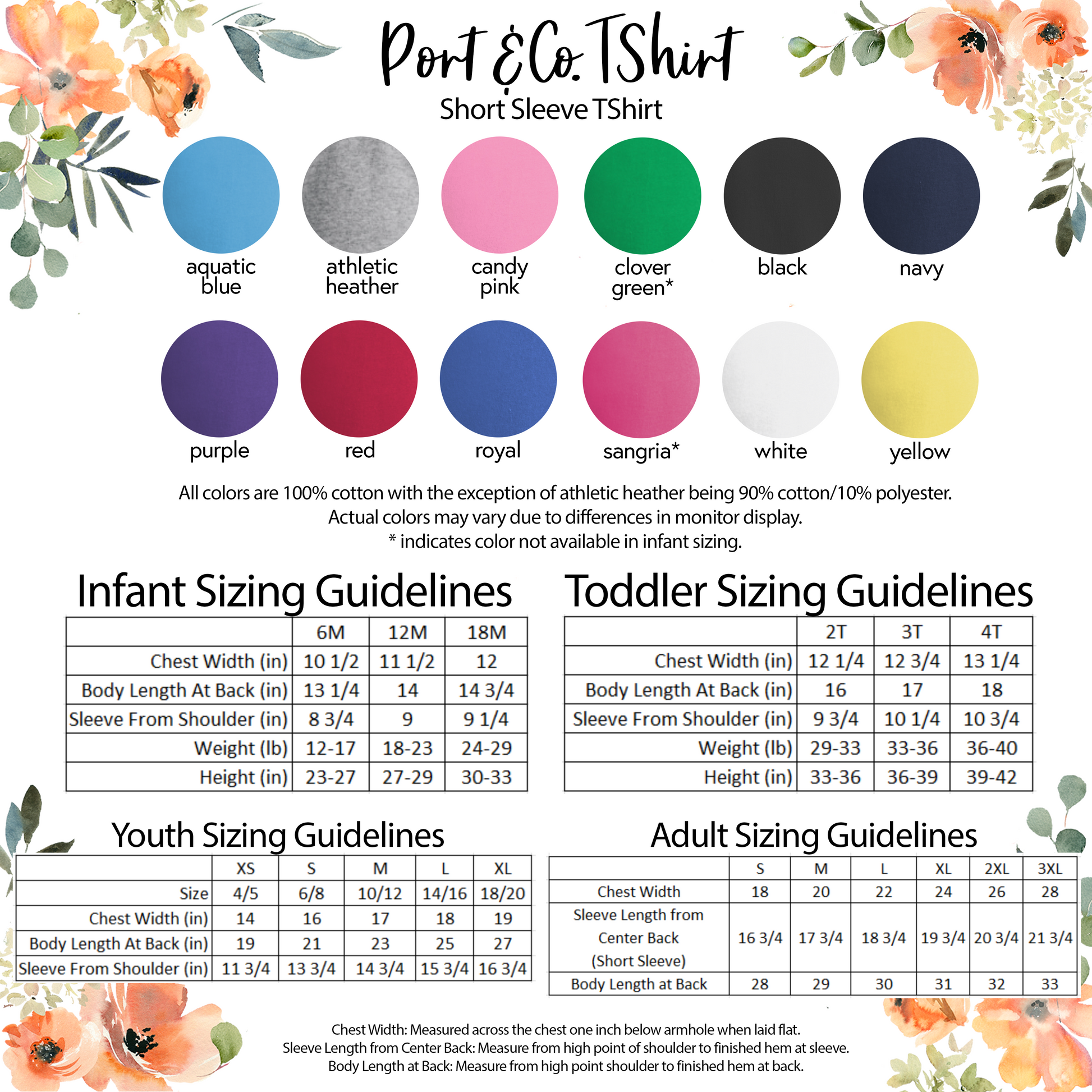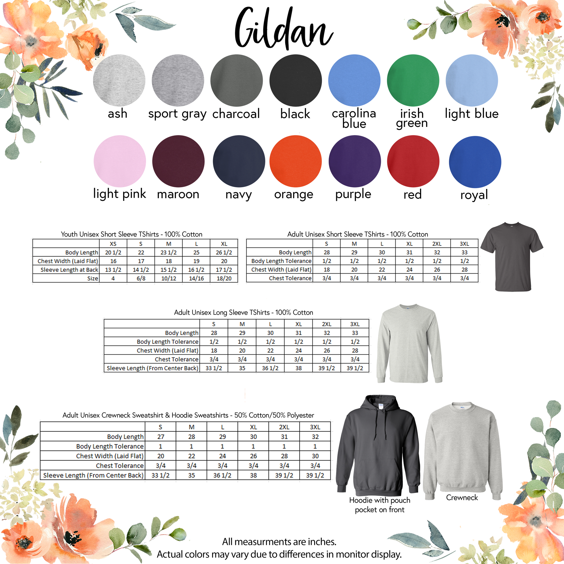 Garment Styles, Colors, and Sizing