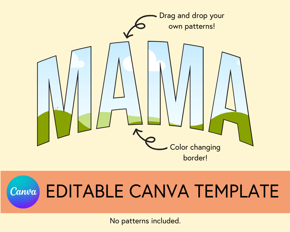 All templates are placed on a 12in x 12in design space and include a fillable template layer and a color changeable border layer. All letters are grouped together and will be filled with the same digital pattern. Each letter cannot be filled individually. Make your border appear thicker by dragging it to the front in the layer position tab or thinner by dragging it to the back.