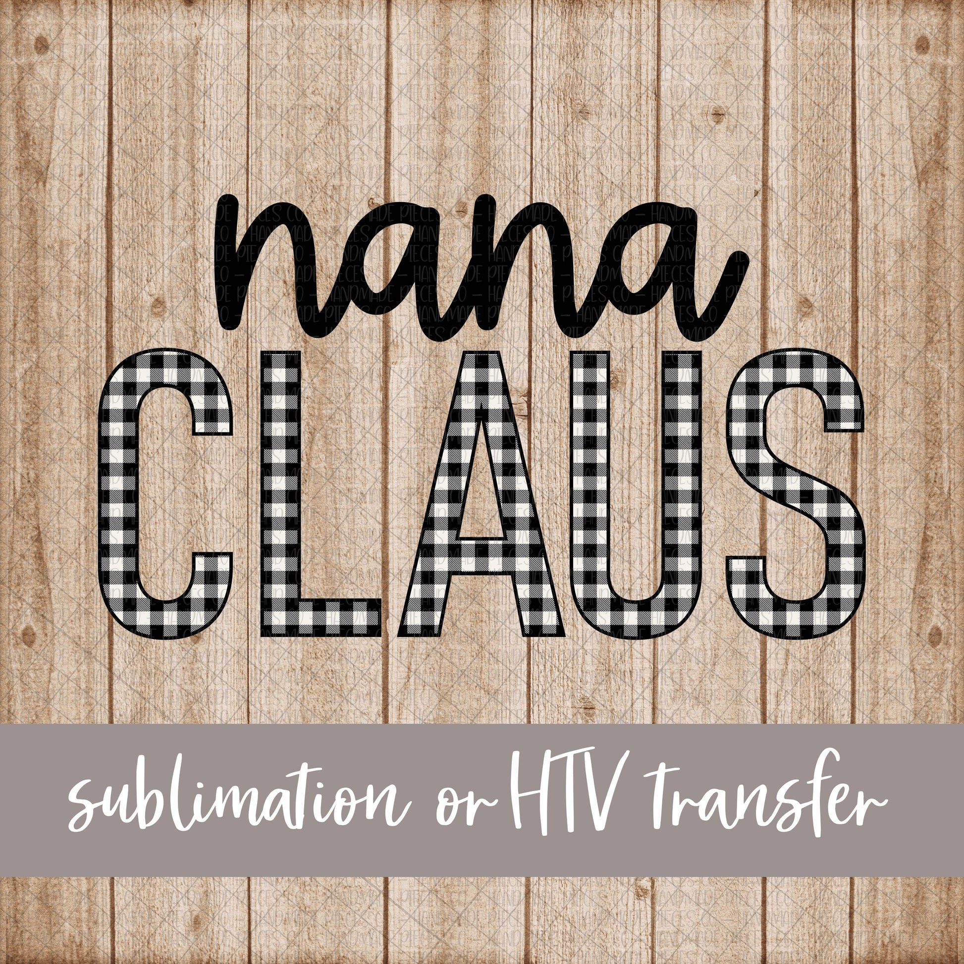 Nana Claus, White Black Buffalo Plaid - Sublimation or HTV Transfer