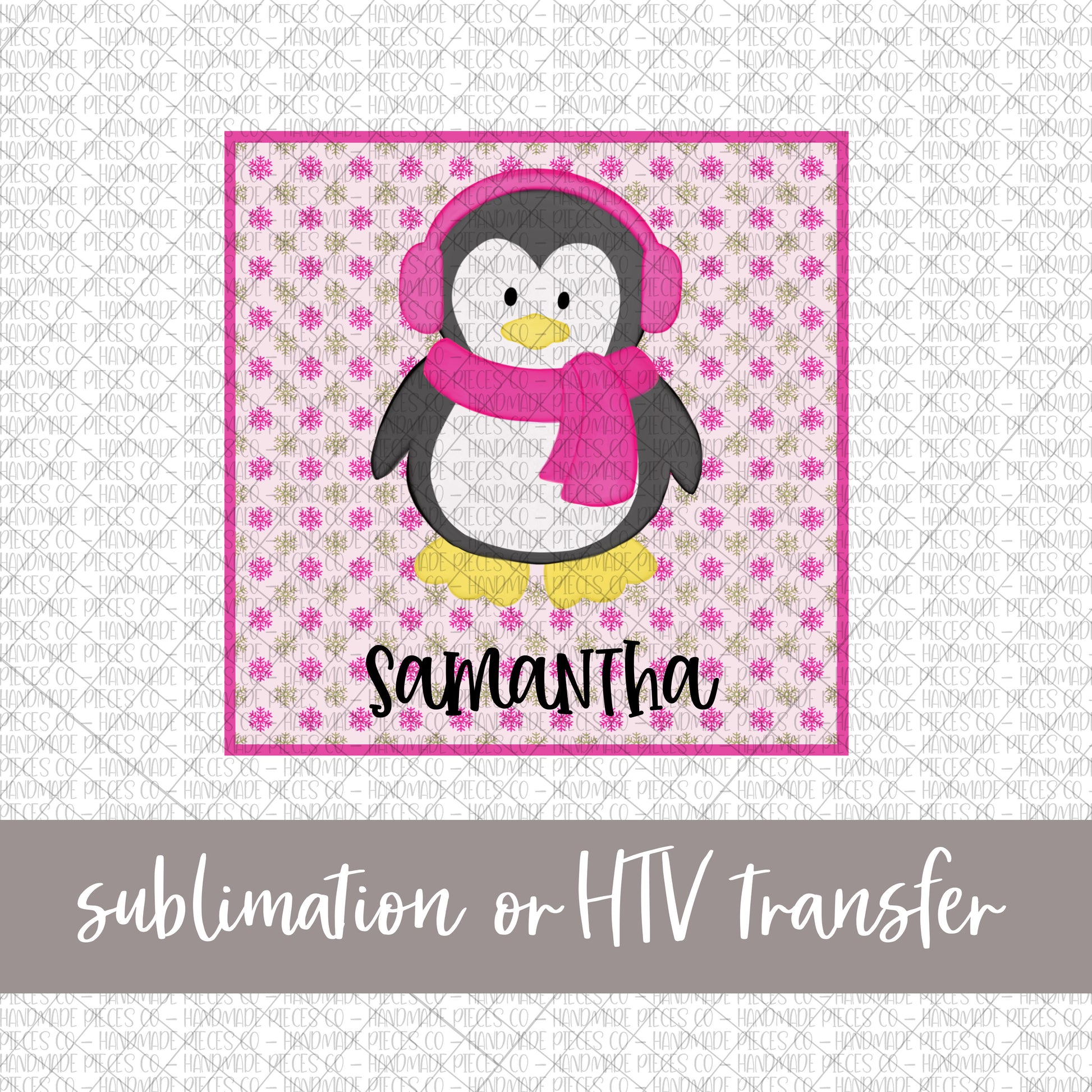 Penguin, Pink with Name - Sublimation or HTV Transfer