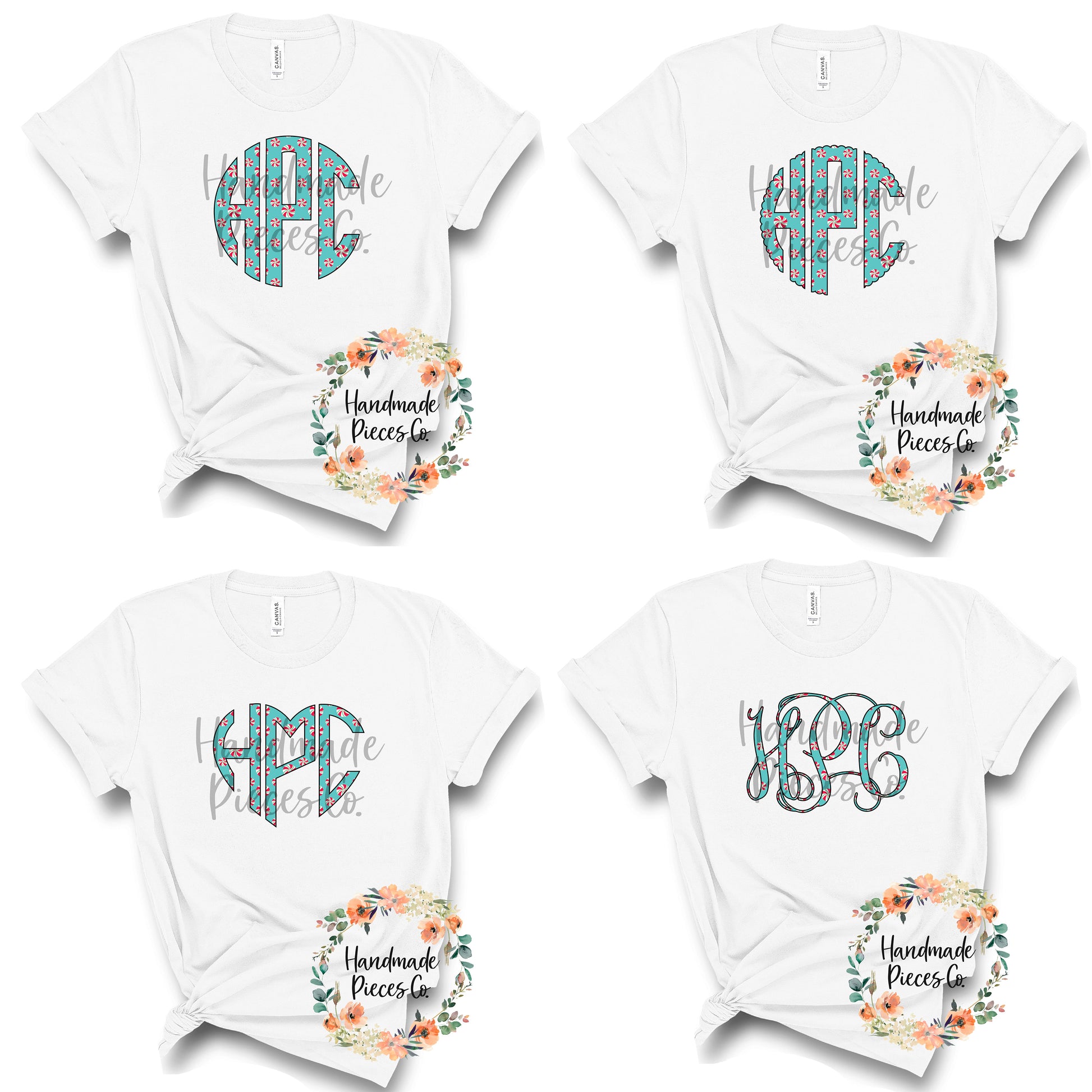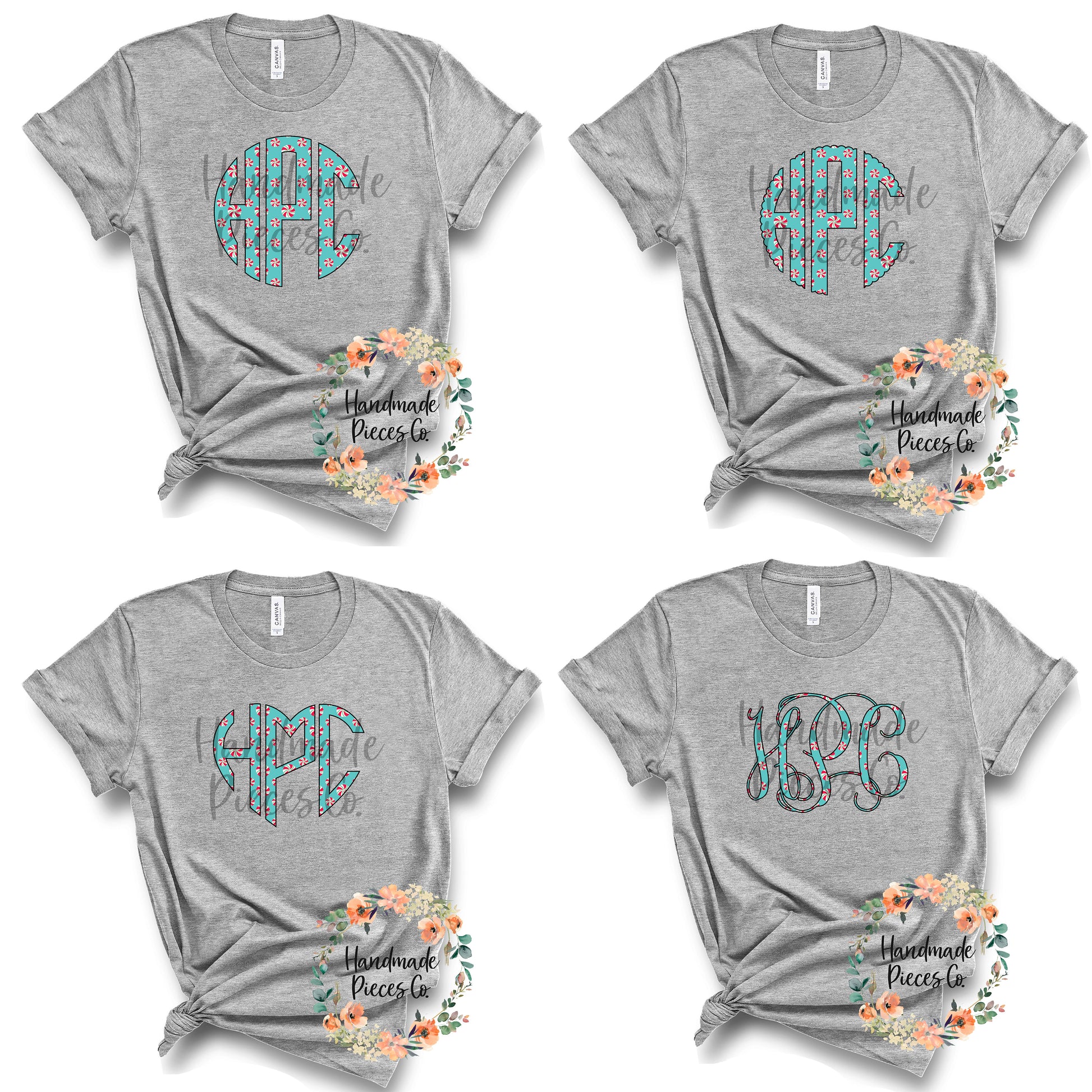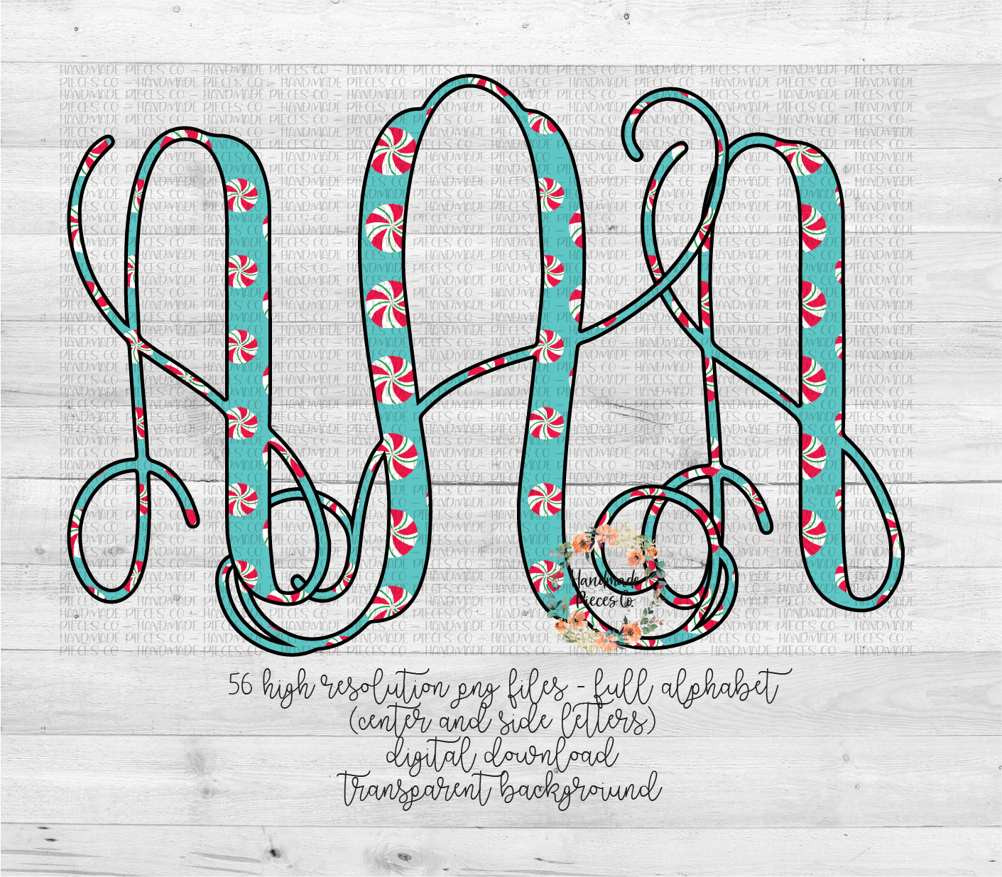 Peppermint Monogram, Blue - Multiple Styles - Digital Download