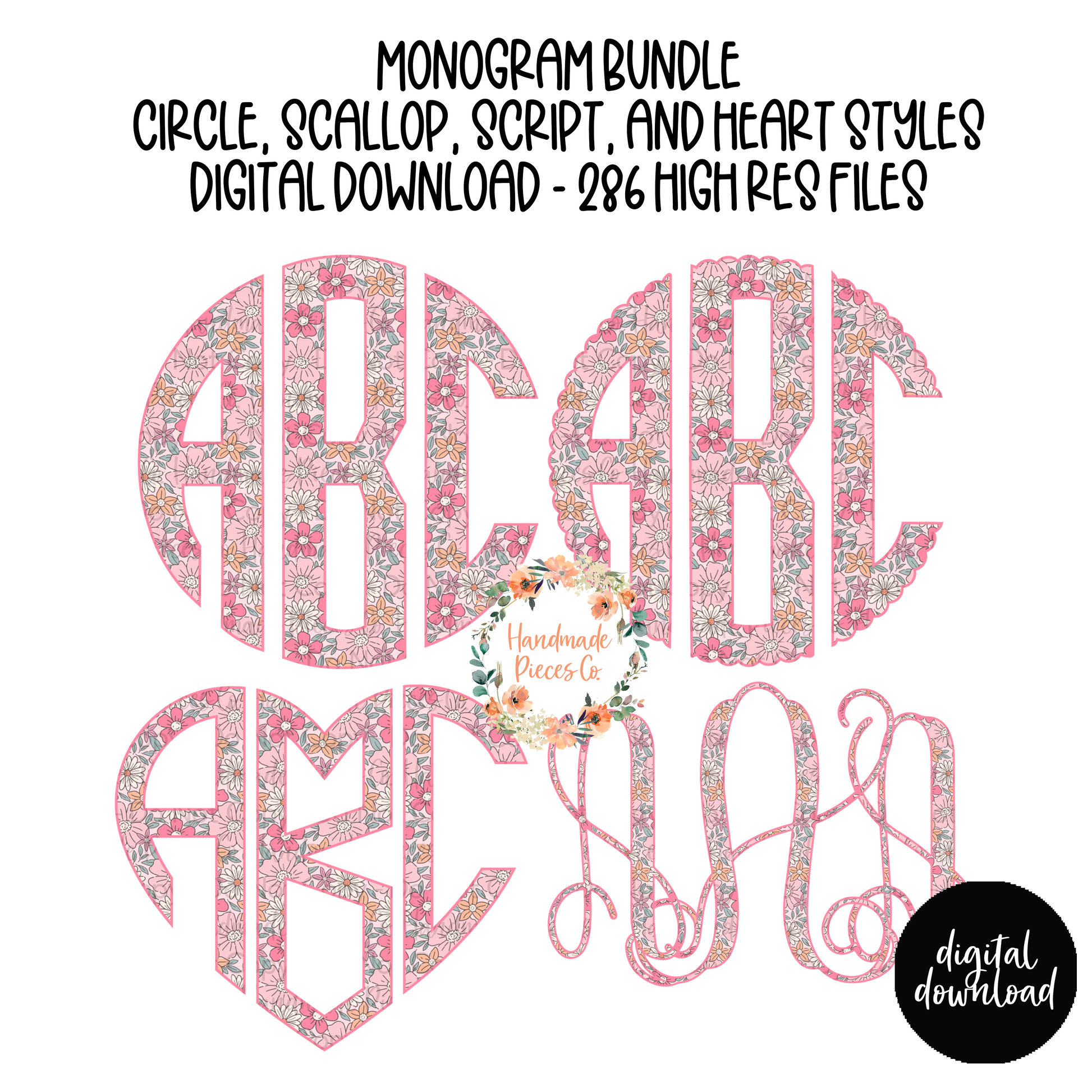 The circle, heart, and scallop monograms each have 78 PNG files per monogram (left, middle, and right for each letter).