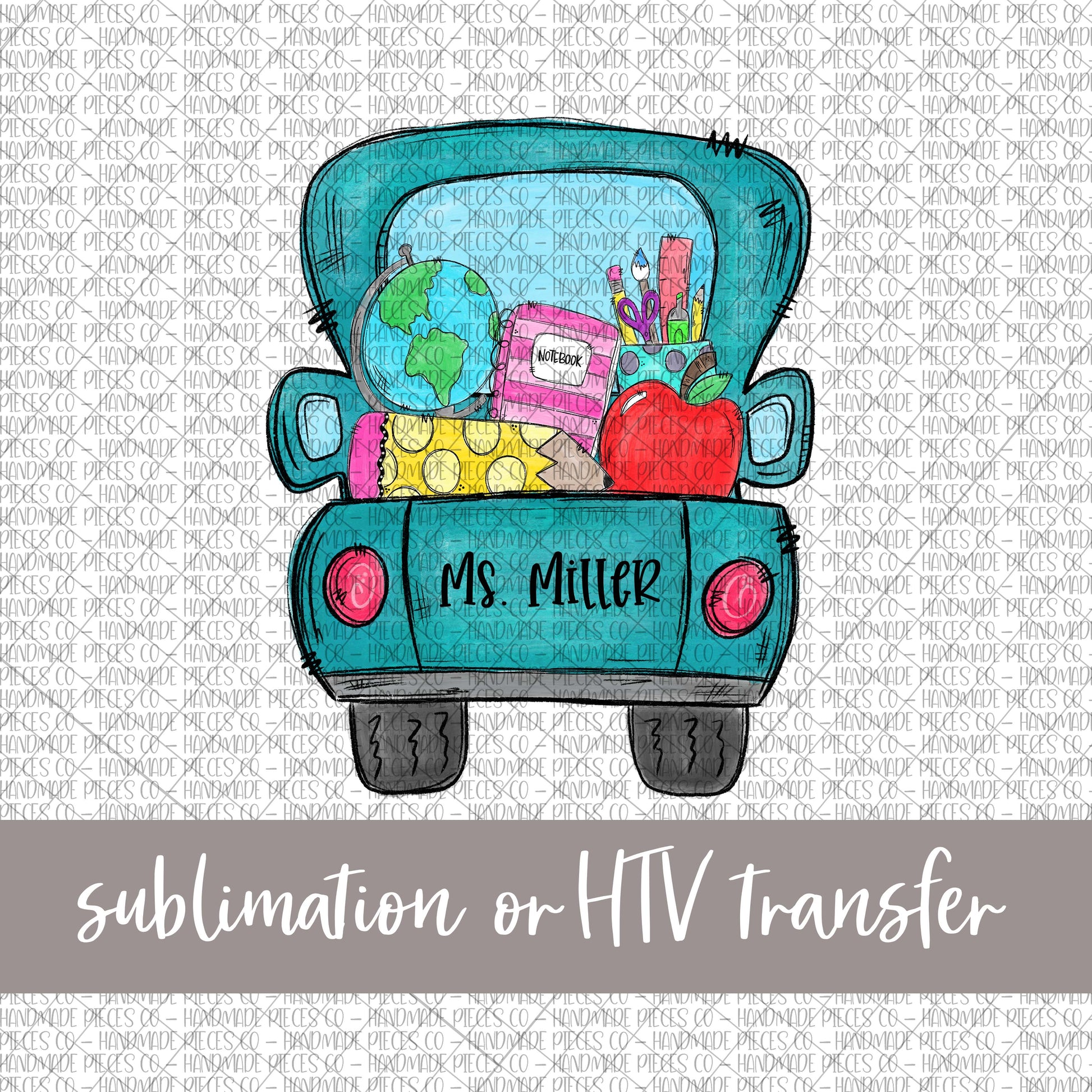School Vintage Truck - Name Optional - Sublimation or HTV Transfer