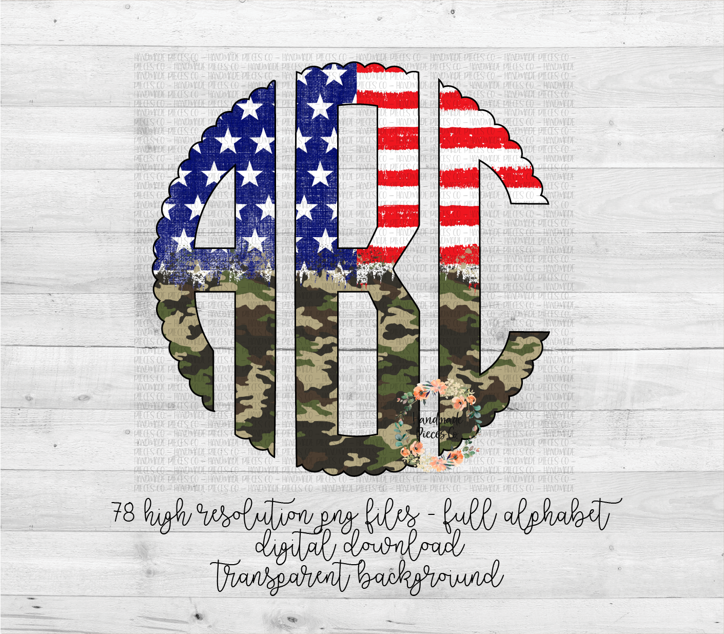 Stars and Stripes Monogram, Camo Split - Multiple Styles - Digital Download