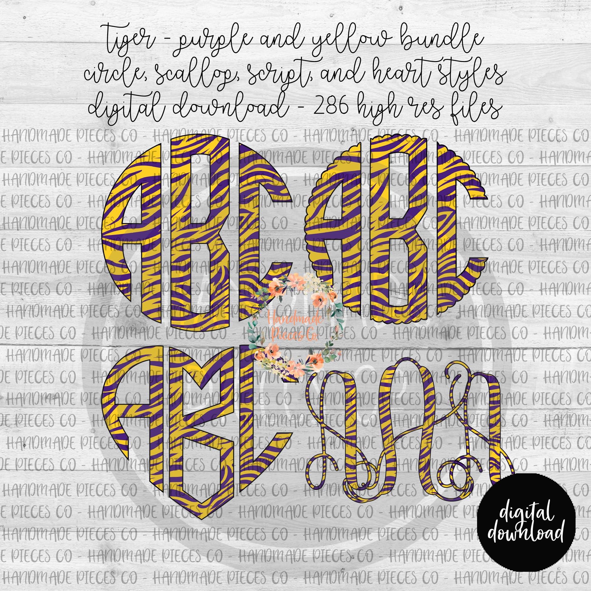 Tiger Monogram, Purple and Yellow - Multiple Styles - Digital Download