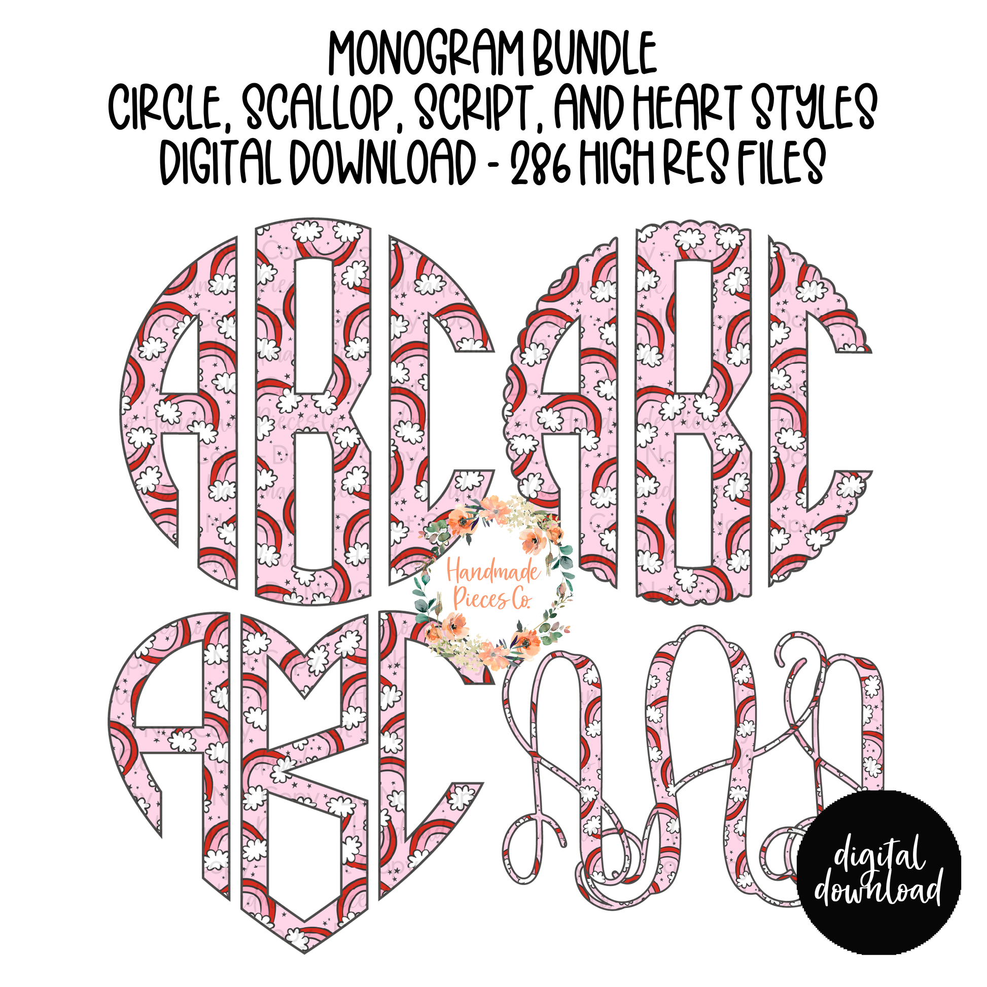 The circle, heart, and scallop monograms each have 78 PNG files per monogram (left, middle, and right for each letter).