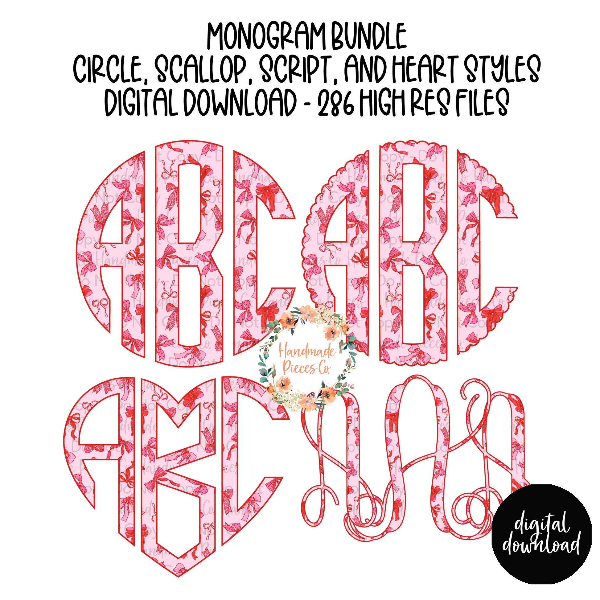 The circle, heart, and scallop monograms each have 78 PNG files per monogram (left, middle, and right for each letter).